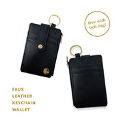 Each belt bag comes with a faux leather keychain wallet that fits perfectly inside the bag and can hold all of your cards and coins.