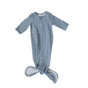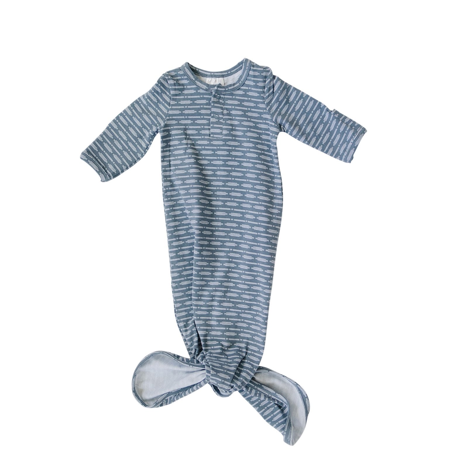These gowns are size 0-3. They are made out of soft cotton to keep your little one comfortable. They have fold over hands and two snaps for easy on and off. The bottom is easily tied and untied in a knot for easy diaper changes.