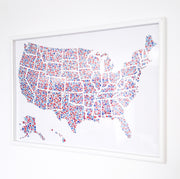 It’s a coloring poster featuring US map illustrated with bubble pattern. Use the map to keep track of your sales or to mark your travels! For a real USA lover, the poster also makes wonderful, patriotic wall art, as you hang the art print on your wall. Each state shape consists of many different sized coloring bubbles.