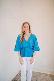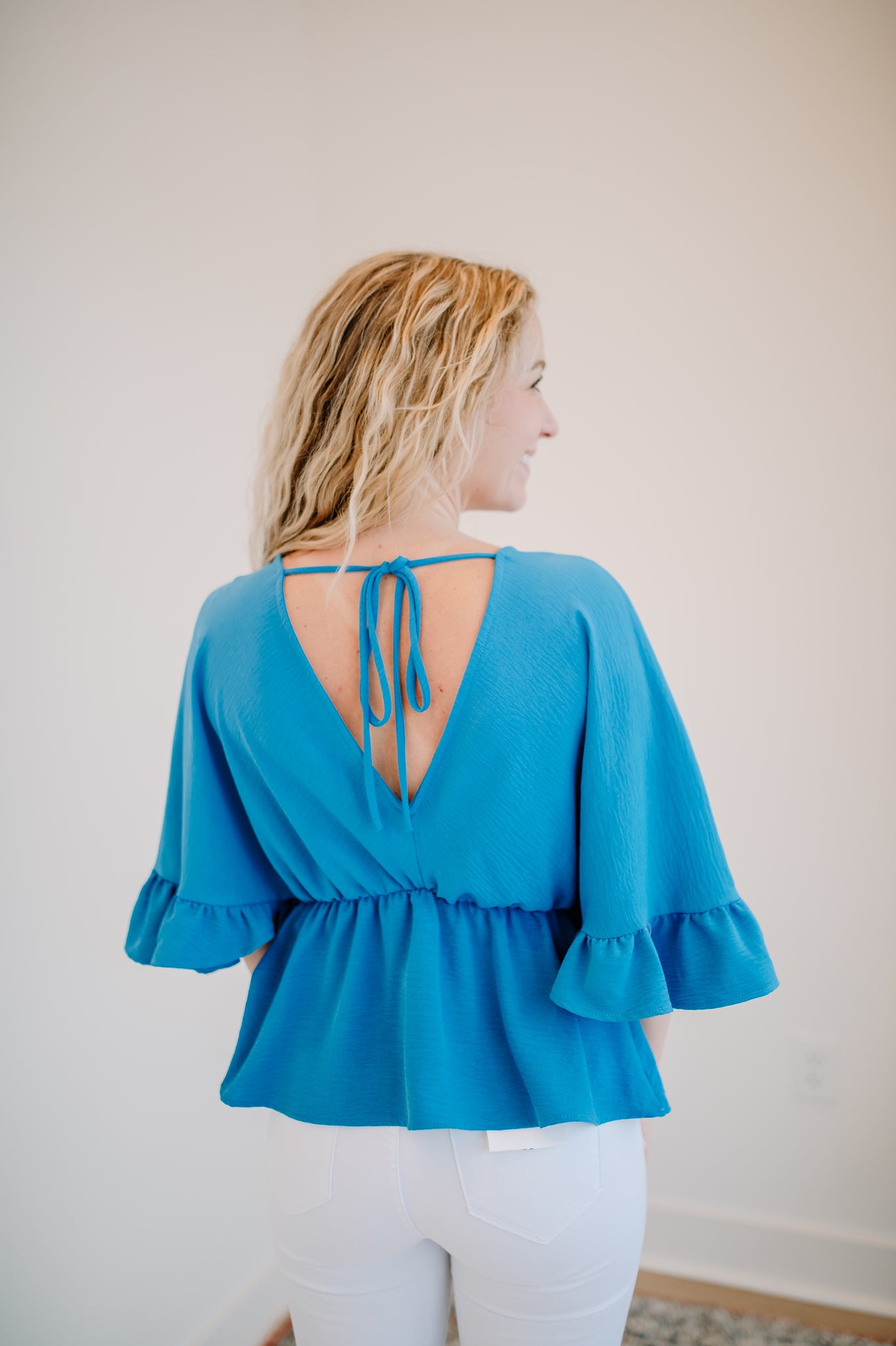Solid baby doll top with open back, v-neck, and kimono sleeves. Made from airflow fabric - Very comfy to wear daily. - Best women top - Very Cute women top SOLID, TOP, BABYDOLL, V-NECK, KIMONO SLEEVE, AIRFLOW, OPEN BACK,