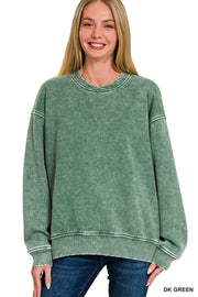 Acid Wash Oversized Fleece Pullover DK GREEN