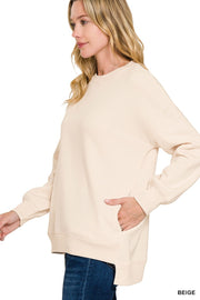 Fleece Hi-low Boyfriend Sweatshirts With Pockets BEIGE