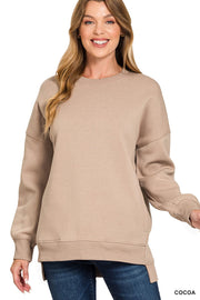 Fleece Hi-low Boyfriend Sweatshirts With Pockets COCOA