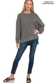 FRENCH TERRY PIGMENT DYE & ENZYME WASHING PULLOVER -HI-LOW HEM, SIDE SLITS BODY LENGTH: 25.5"(FRT), 28"(BACK) CHEST:48" approx. -MEASURED FROM SMALL *