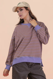 Stripe Comfy Casual Oversized Knit Top MOCHA LAVENDER