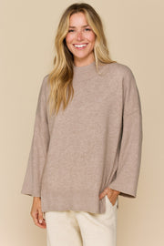 Wide Sleeve Mock Neck Sweater HEATHER MOCHA