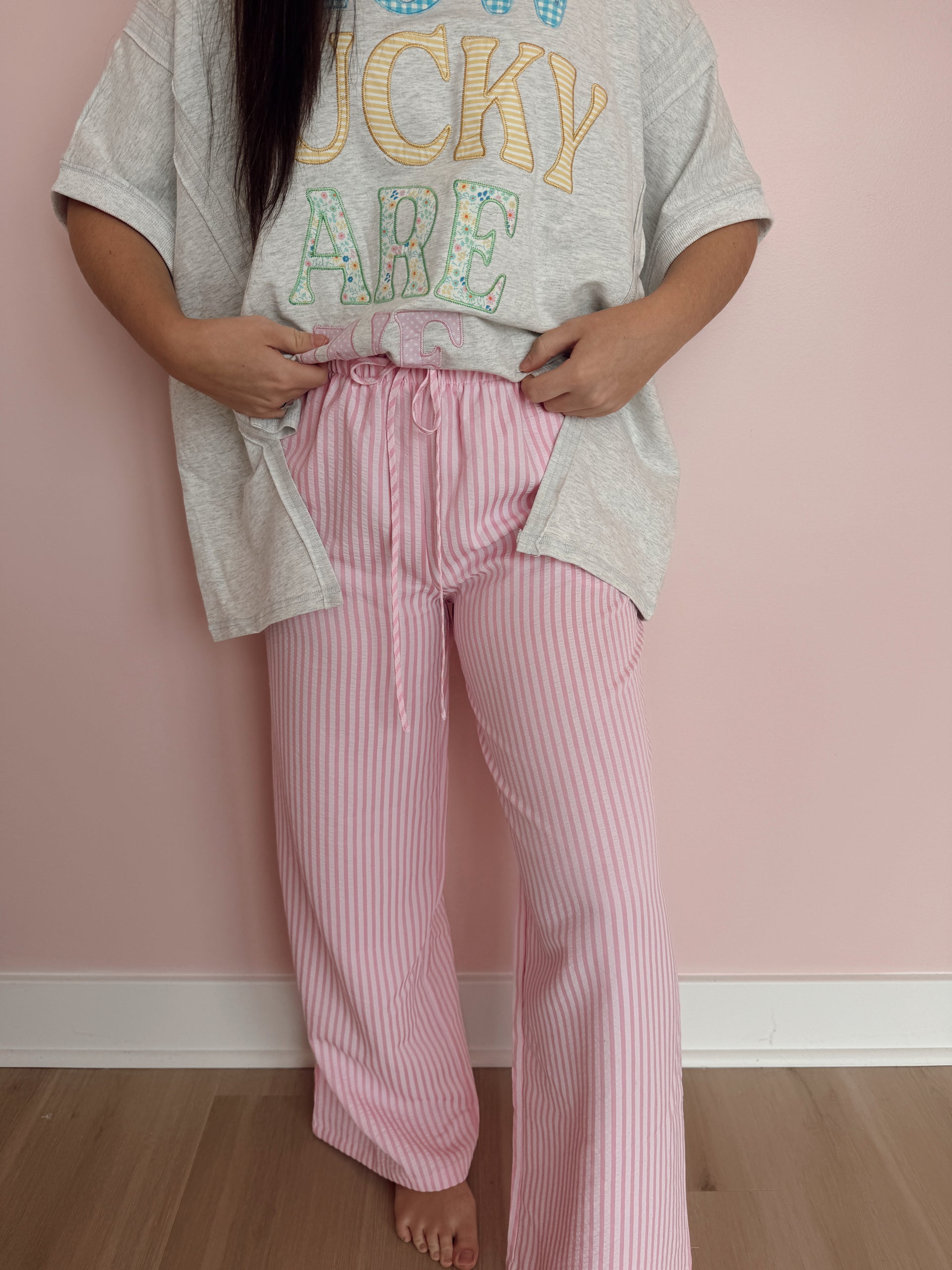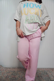 Waist tie detail striped long pants