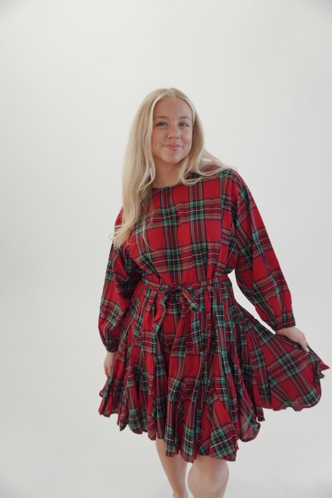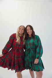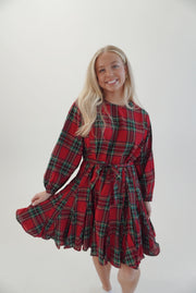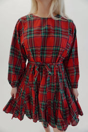 Tartan Check A-line belted mini dress