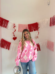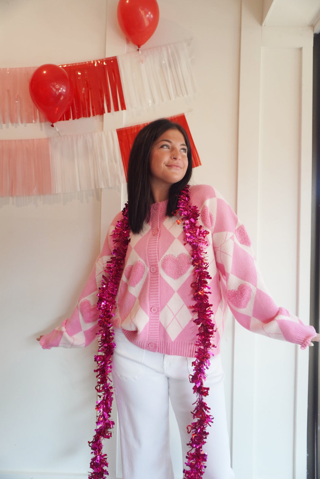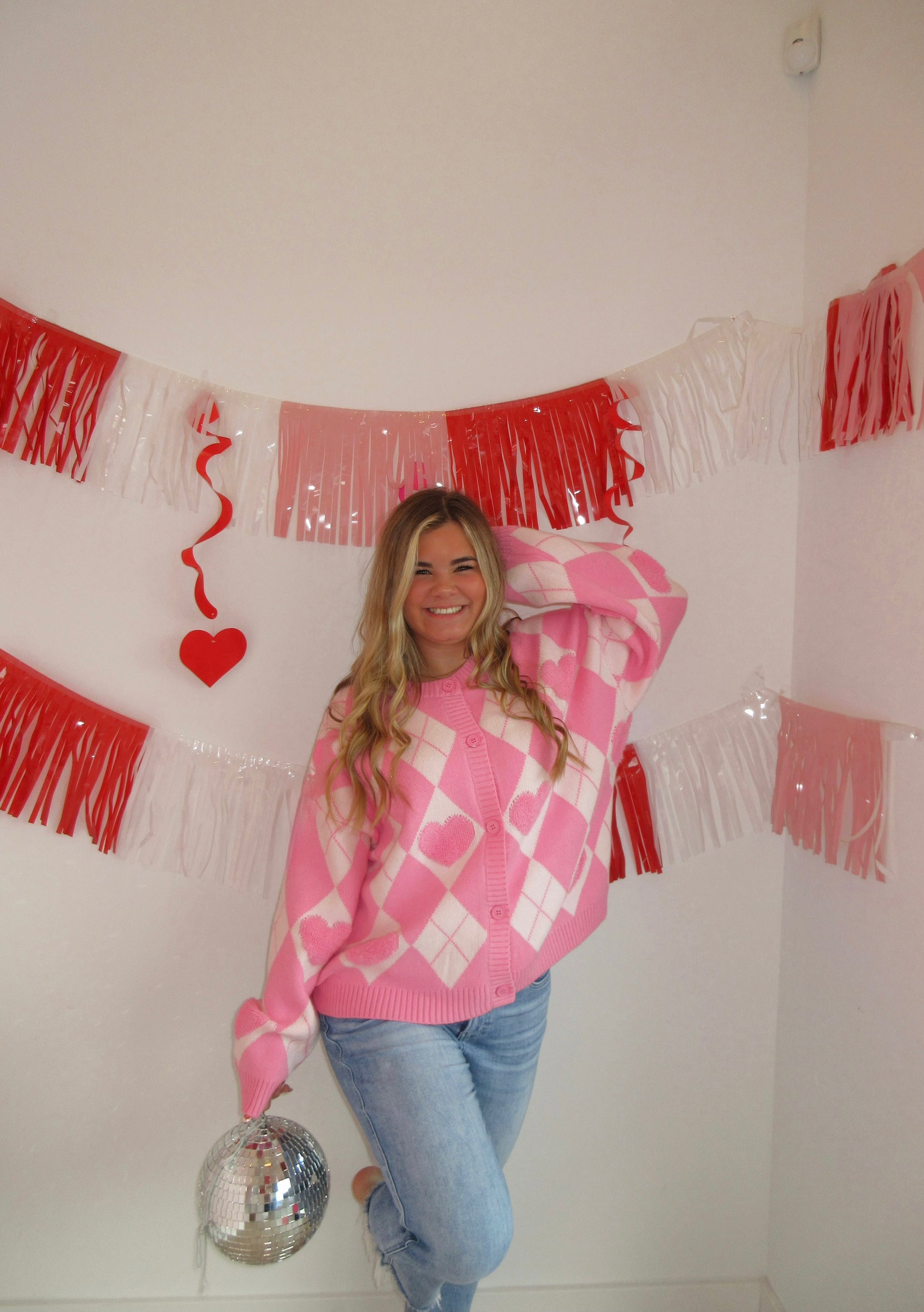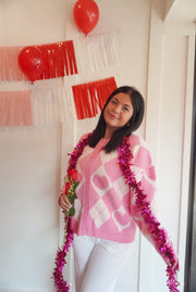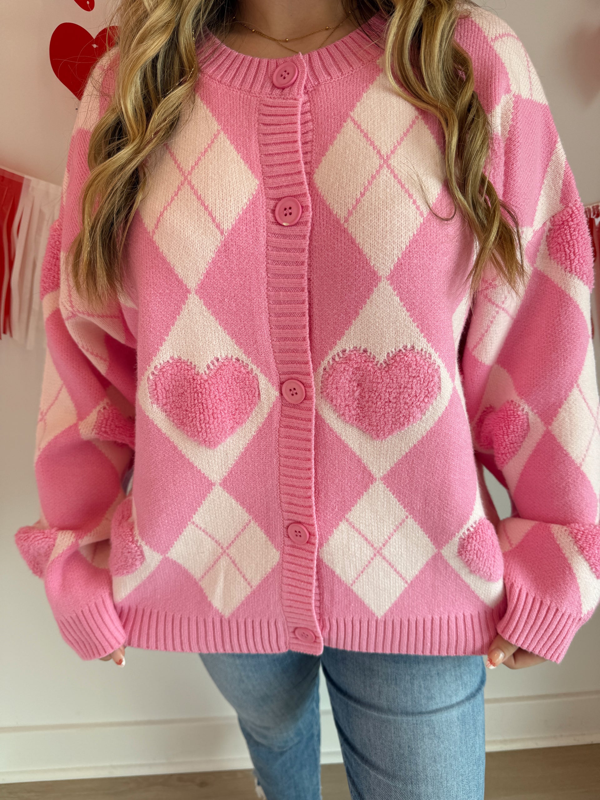 Heart detail argyle cardigan