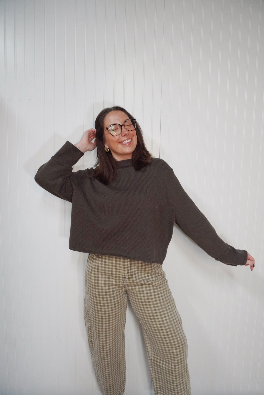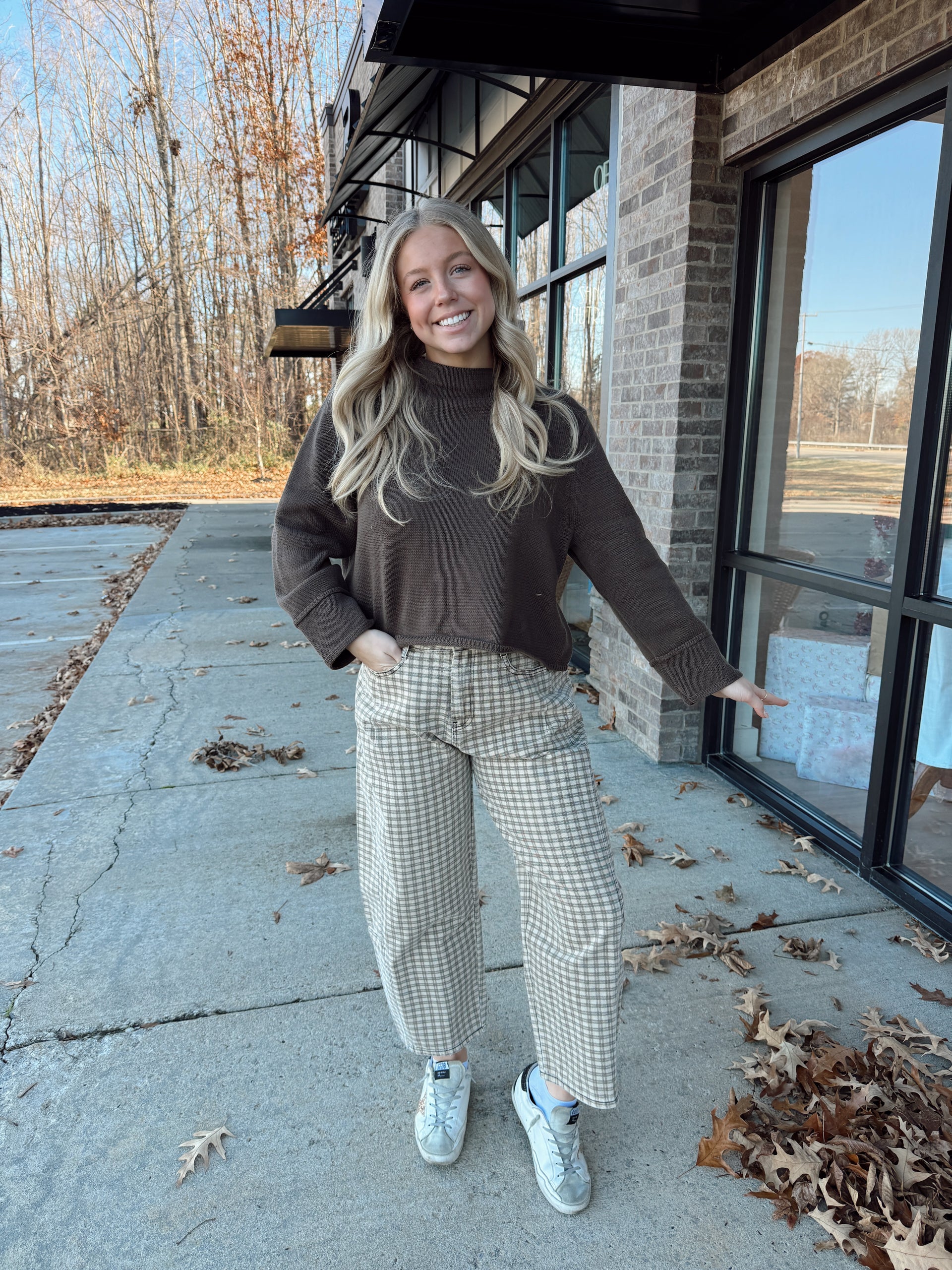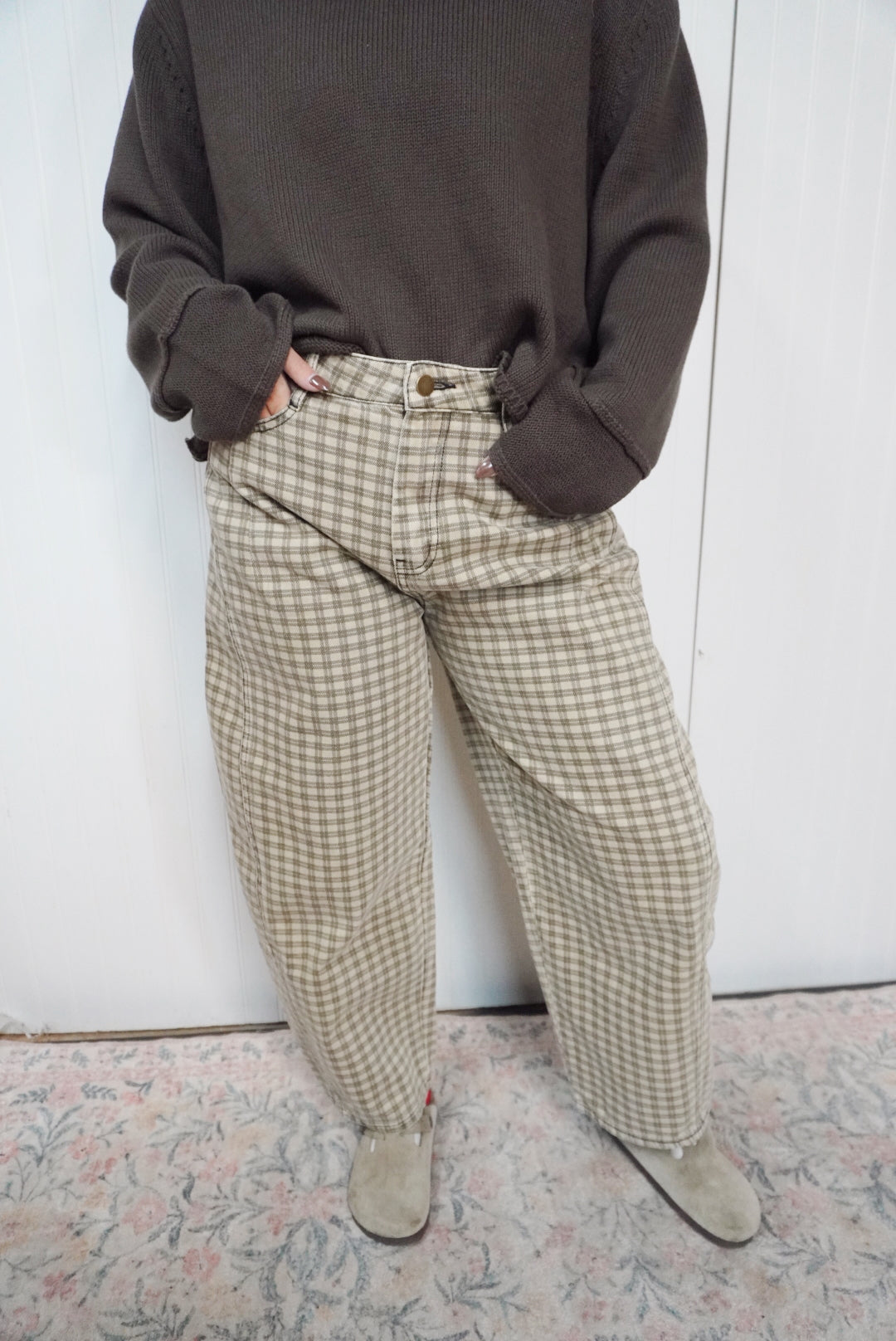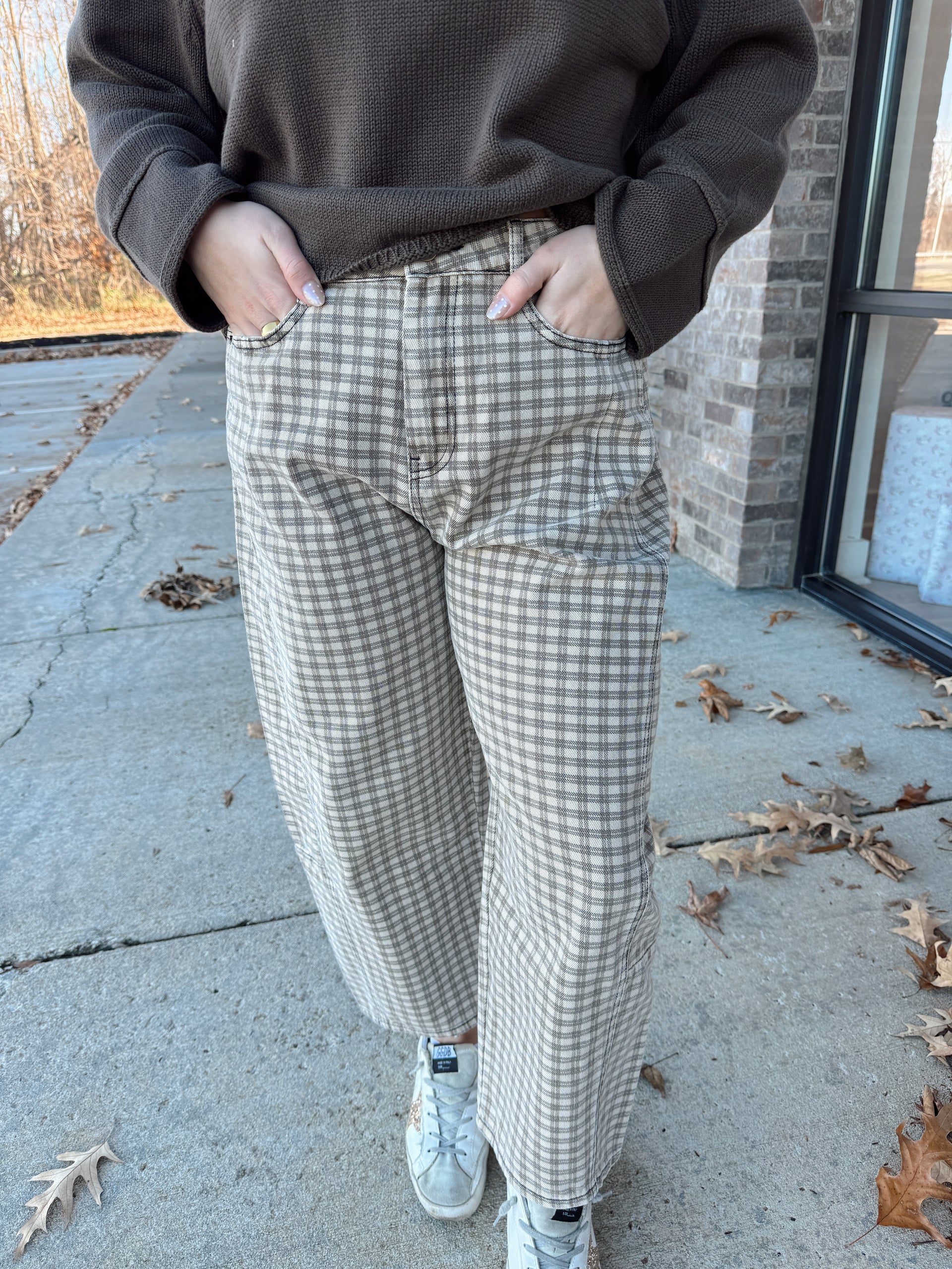 Mini checker pattern barrel pants