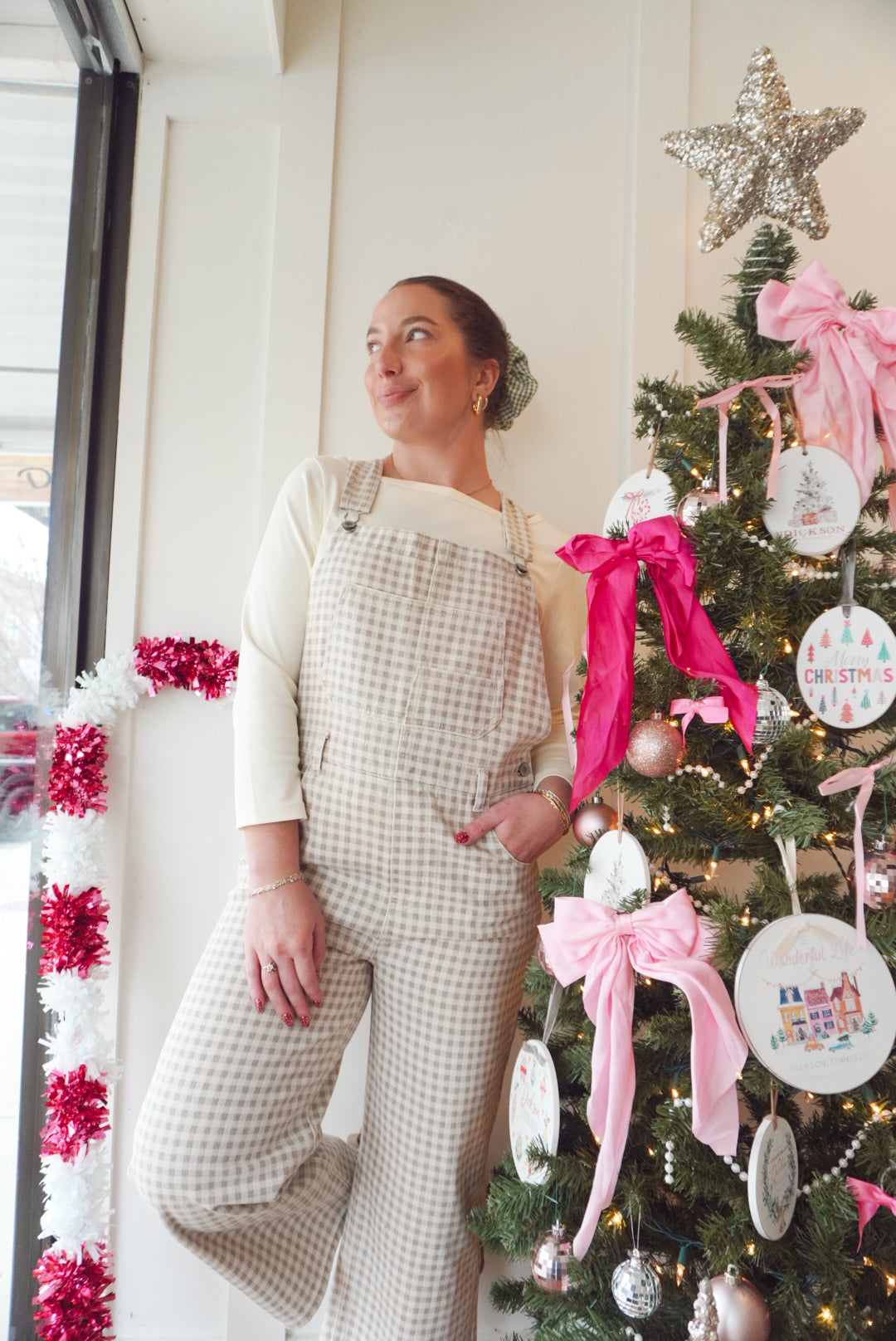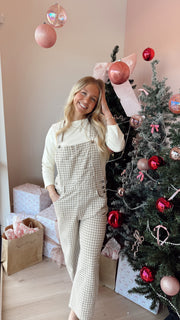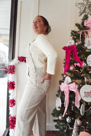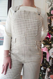 Gingham denim overalls