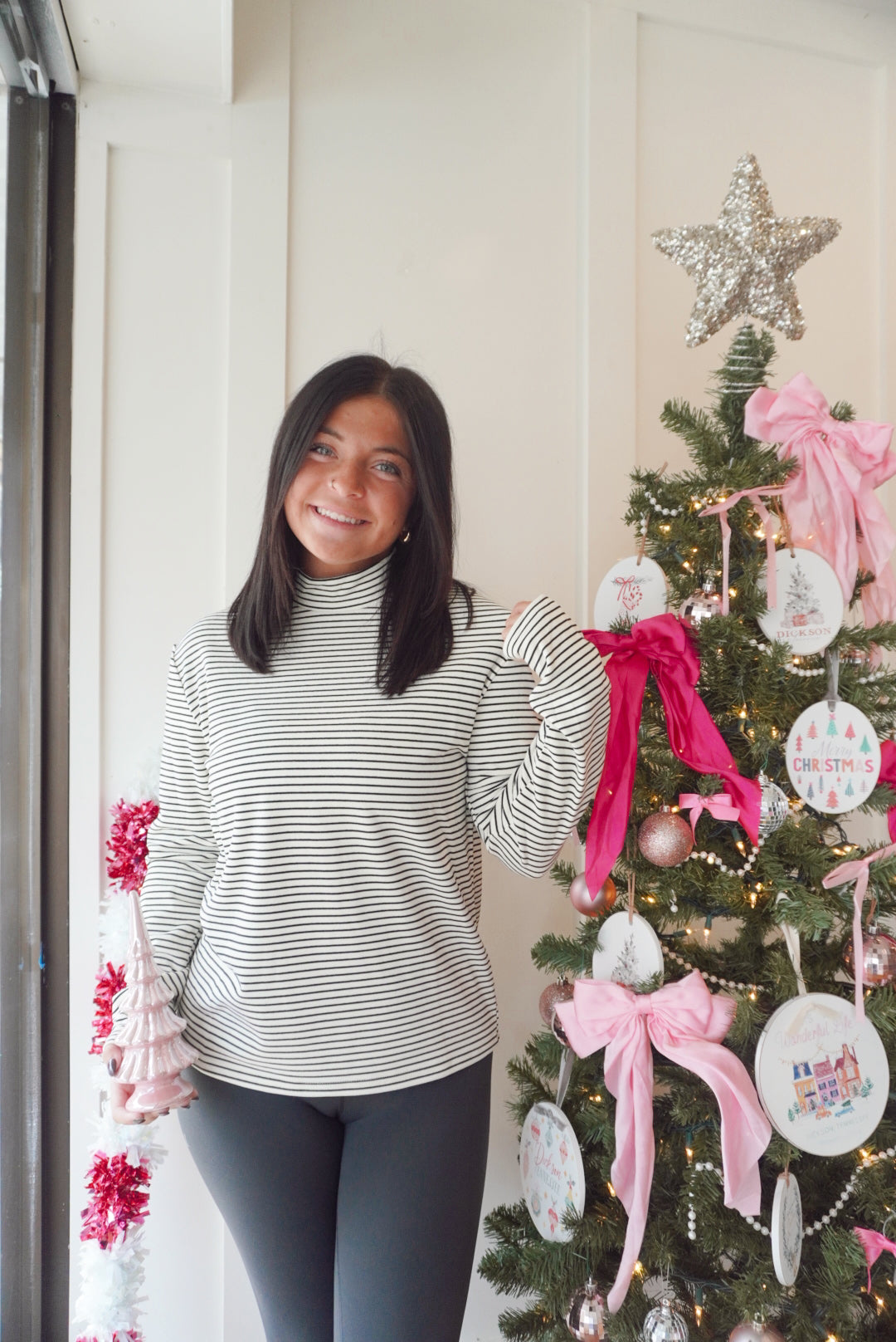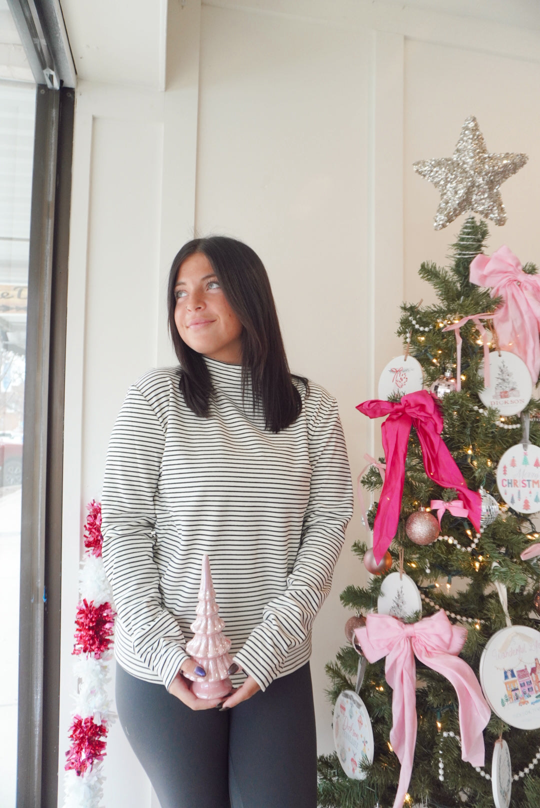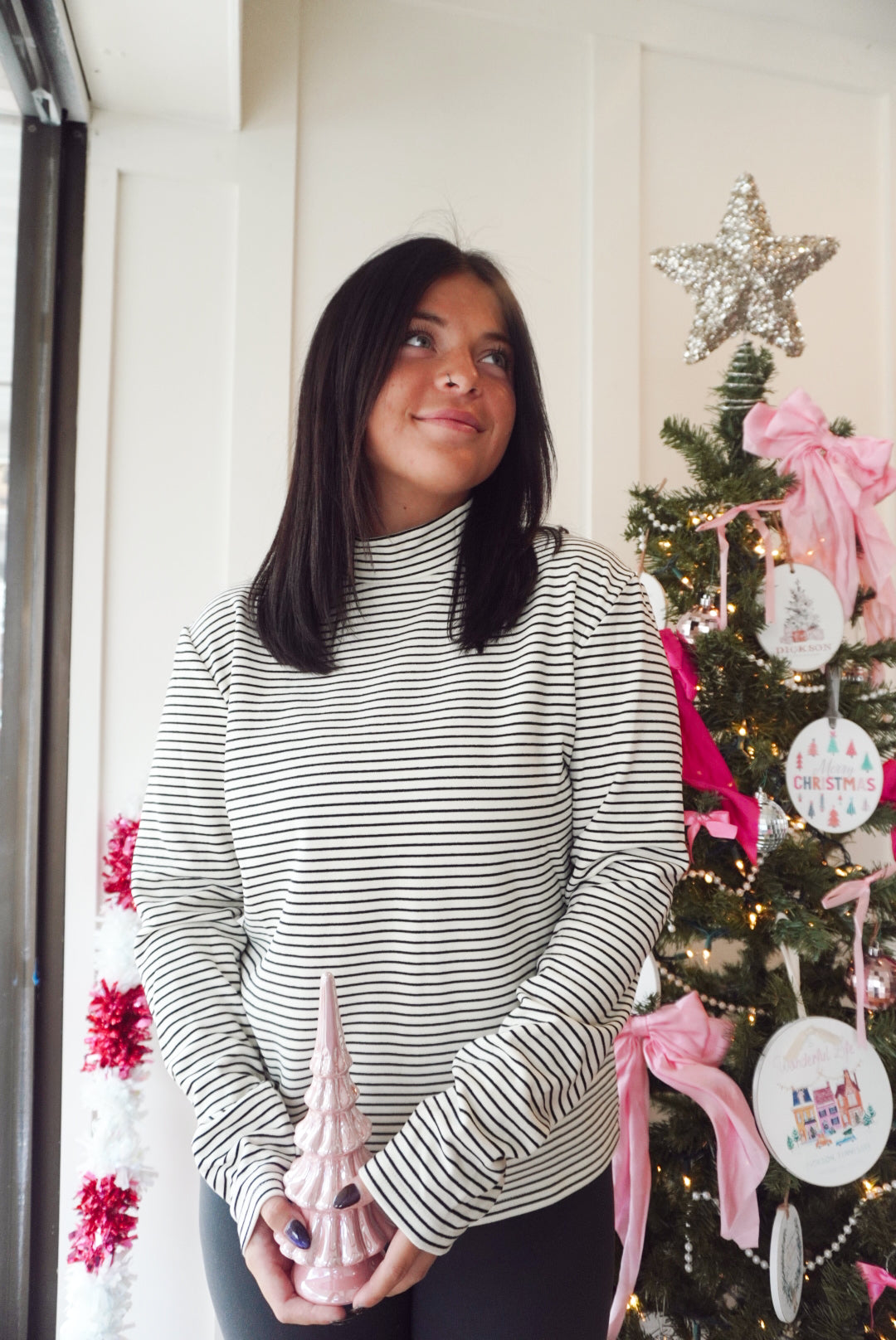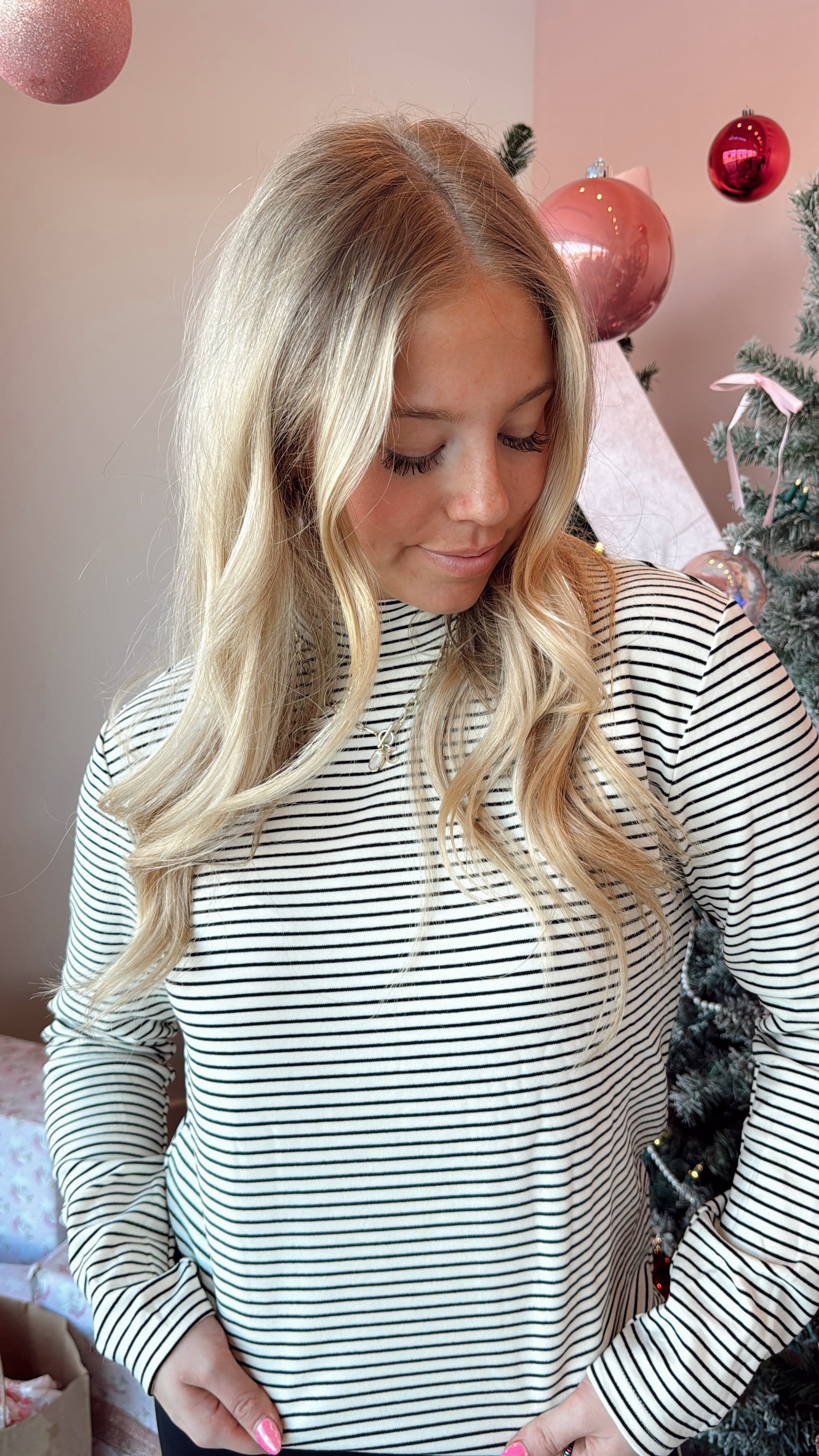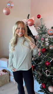 Mock neck long sleeve stripe top