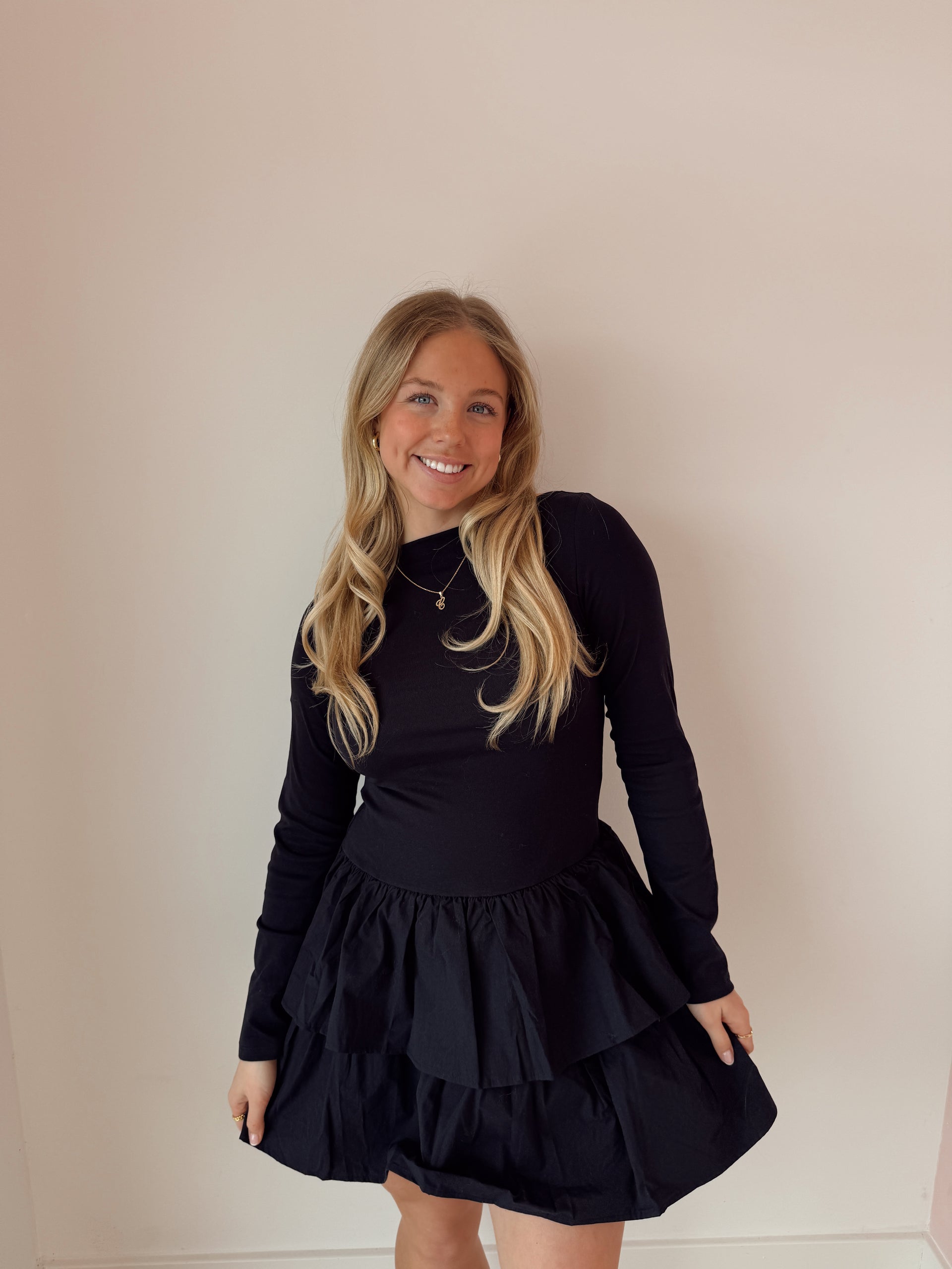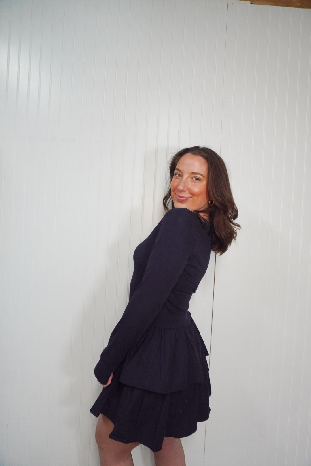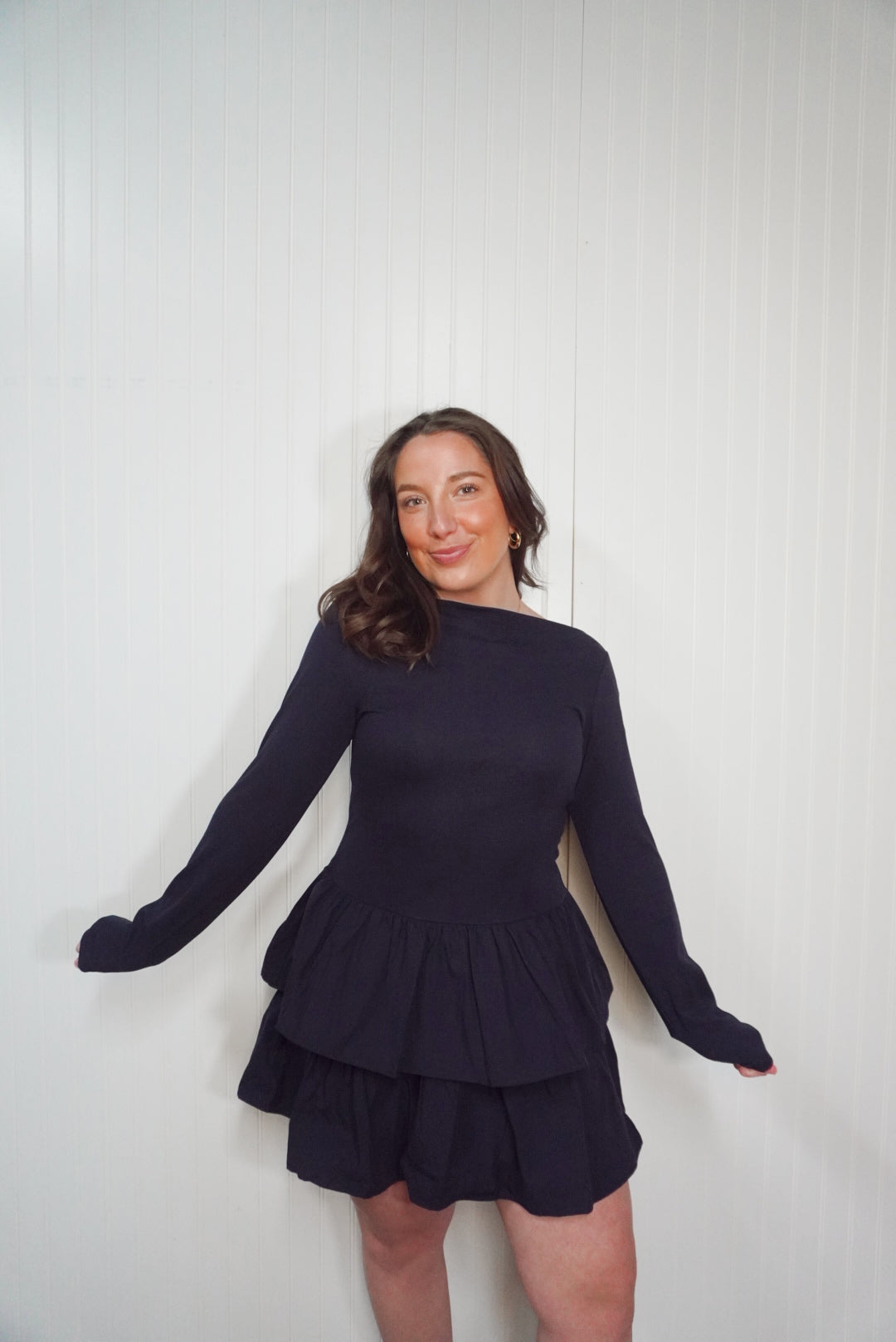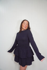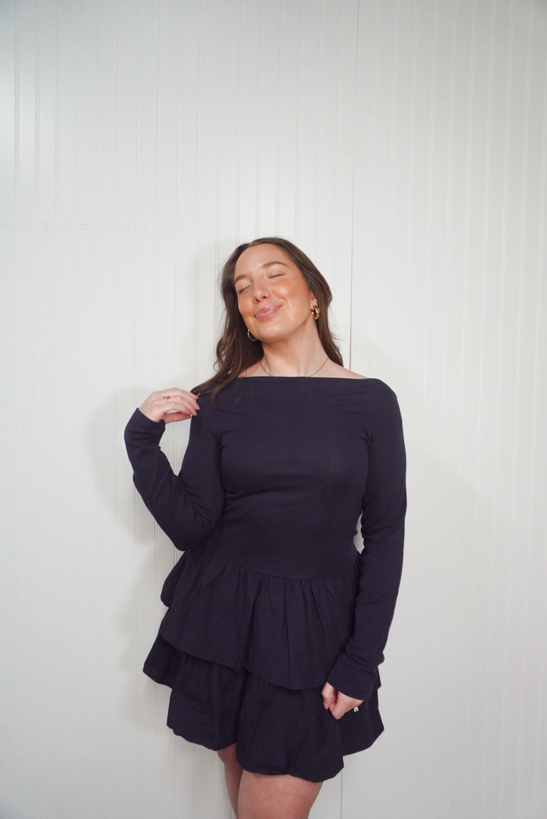 Boat neck tiered ruffle dress