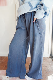Mineral washed dropped side pocket wide leg pants