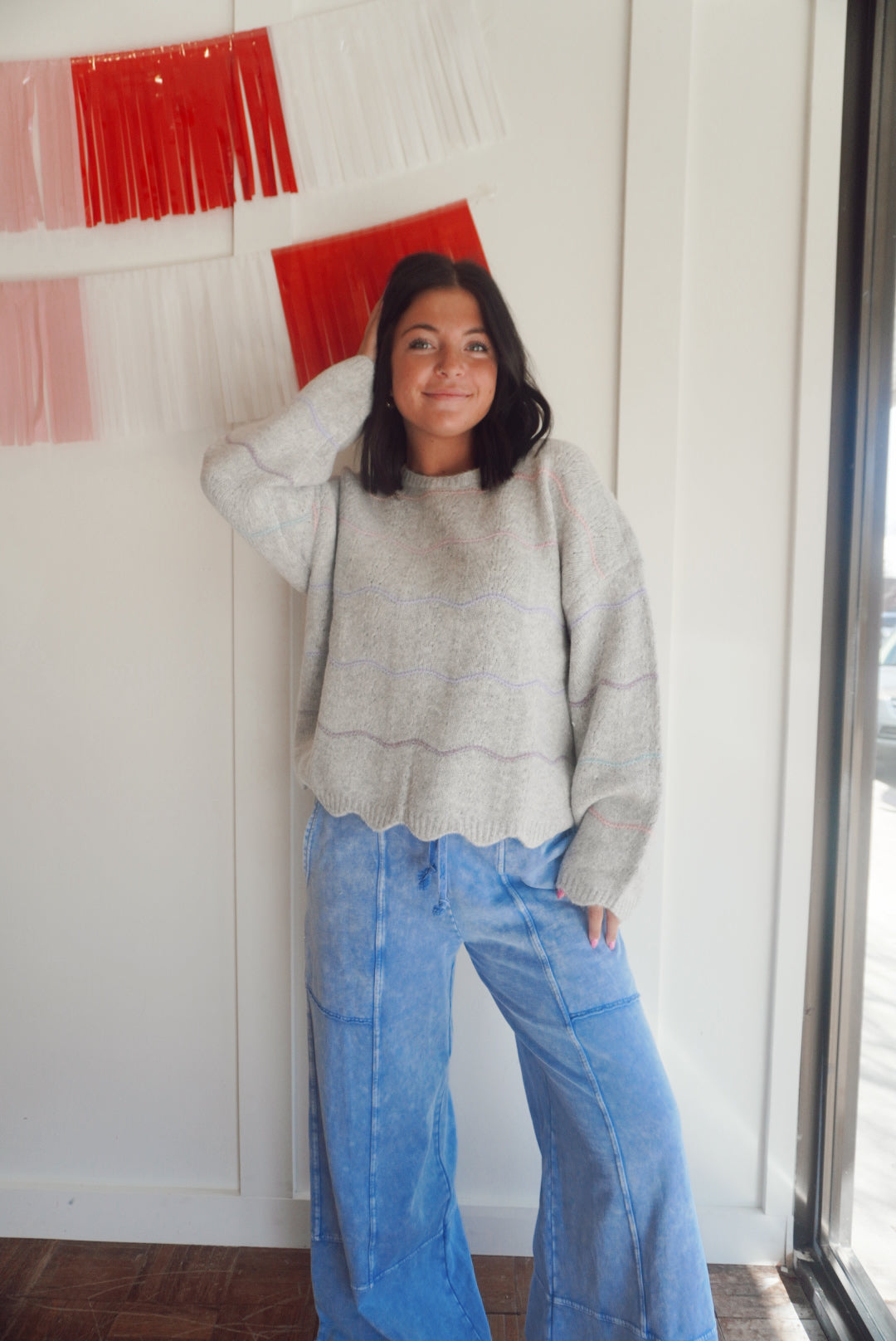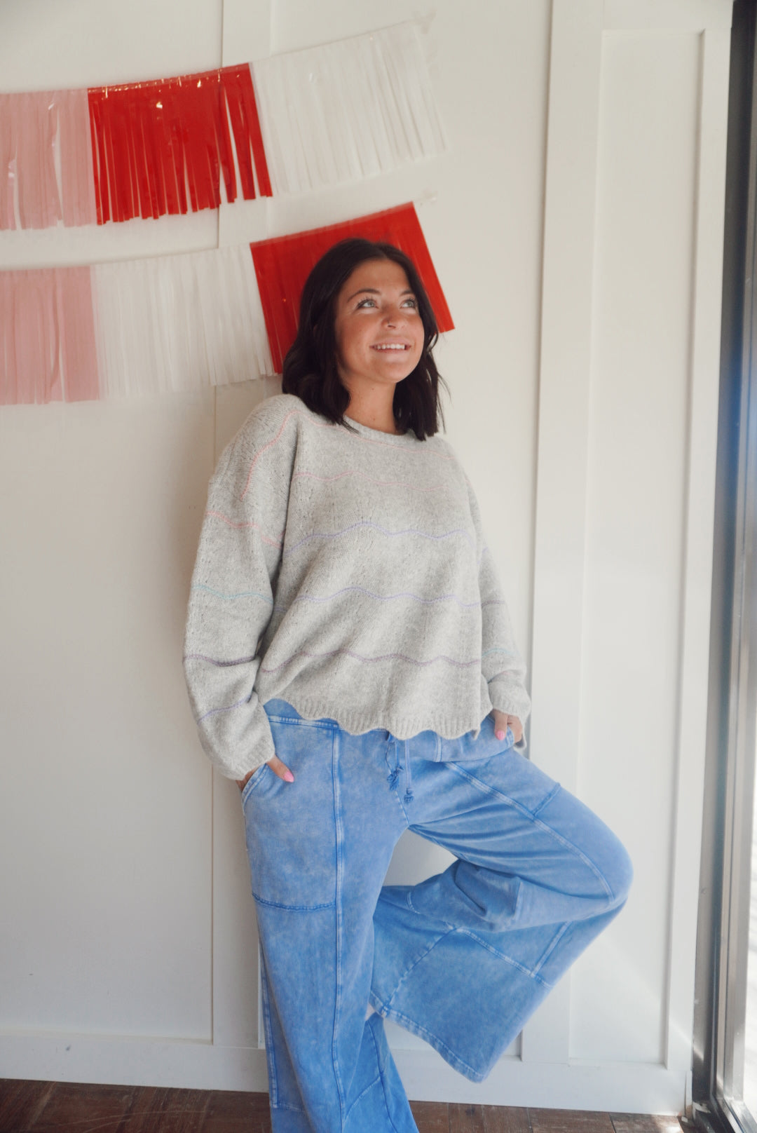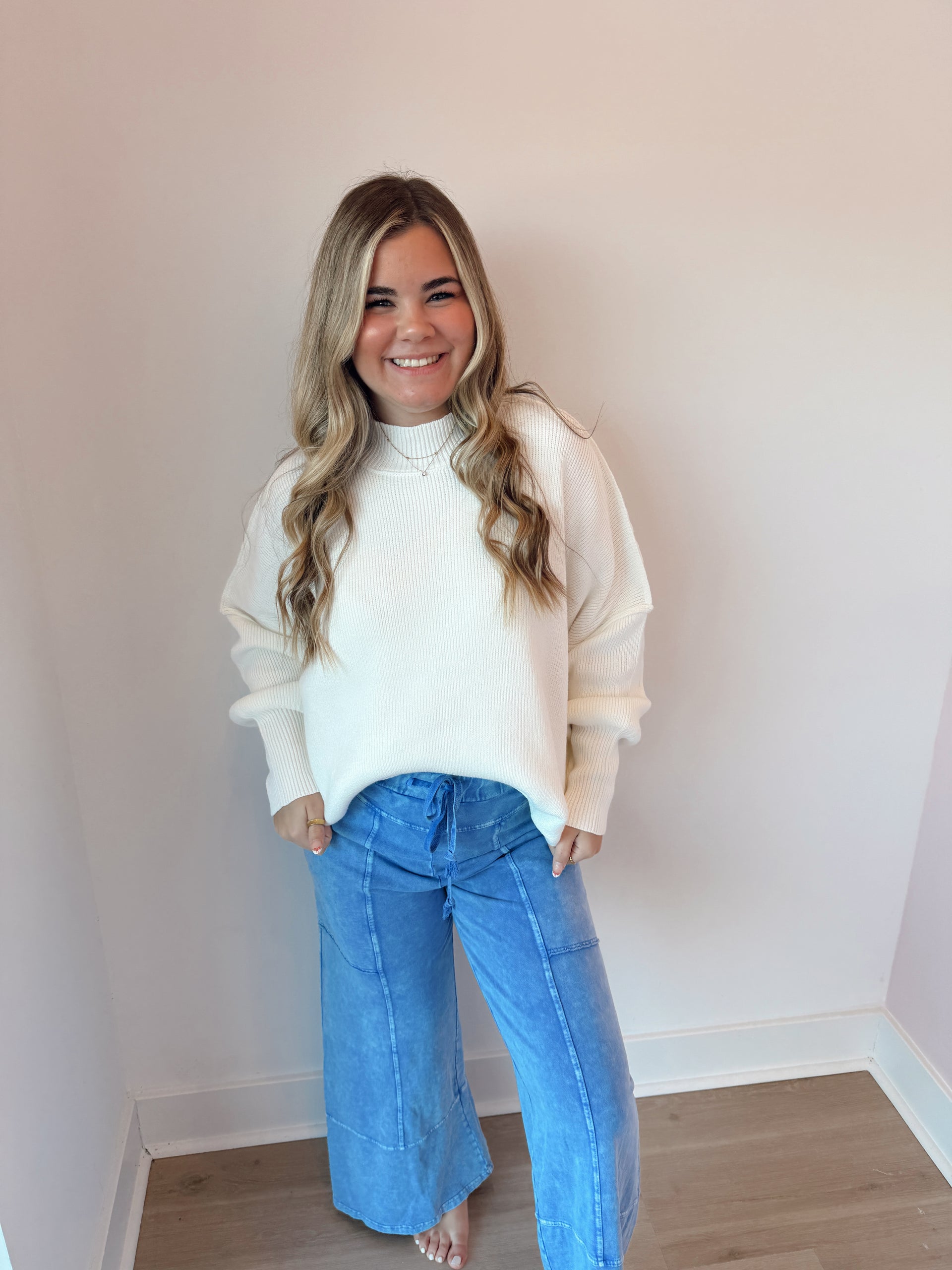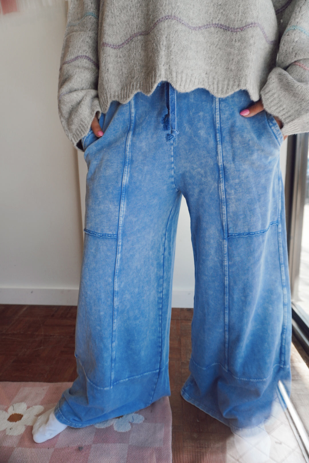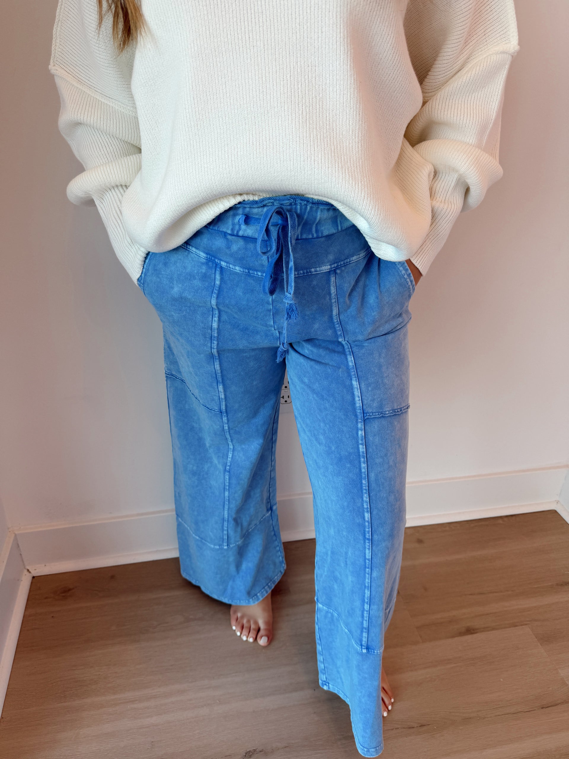 Mineral wash seam detail wide leg pants