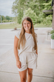 WIDE ELASTIC WAISTLINE POCKETS HIGH WAISTED MINI SHORTS NOT LINED SELF: RAYON 80%, LINEN 20%