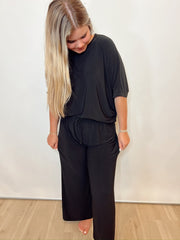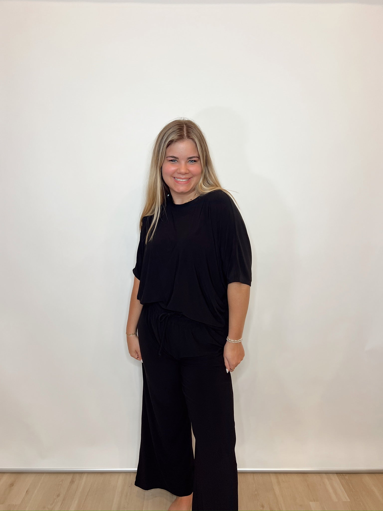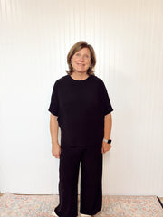 This wrinkle-free two-piece set combines chic style with modern functionality. Featuring a poncho-like tunic top and flowy, wide-leg pants, it's the ultimate blend of relaxed charm and travel-ready ease. The elastic waistband offers a comfortable, flattering fit, making it THE go-to outfit from take-off to landing.