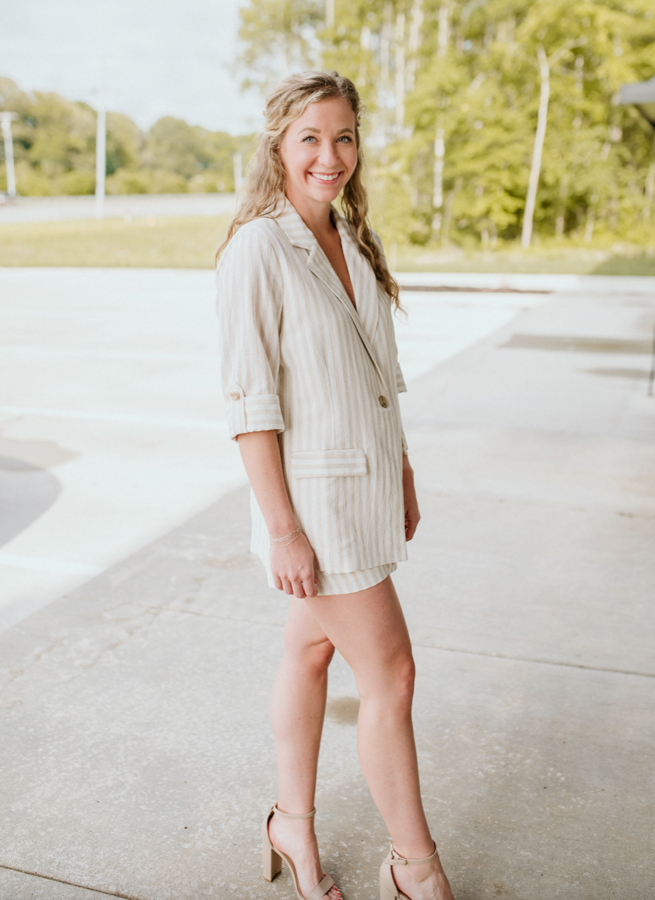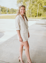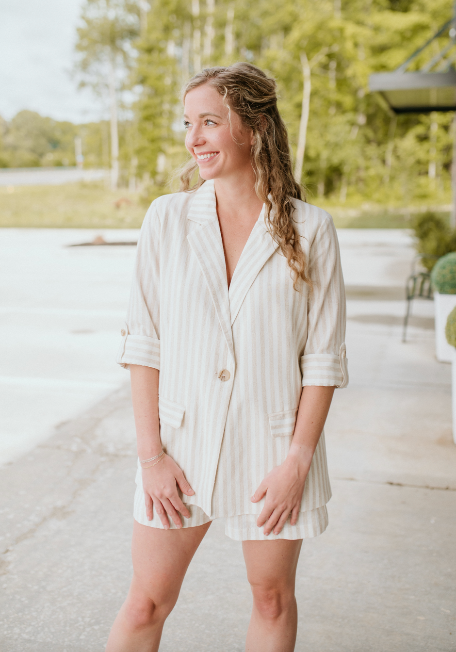Striped soft linen 3/4 roll tab sleeve jacket 55% linen 45% cotton
