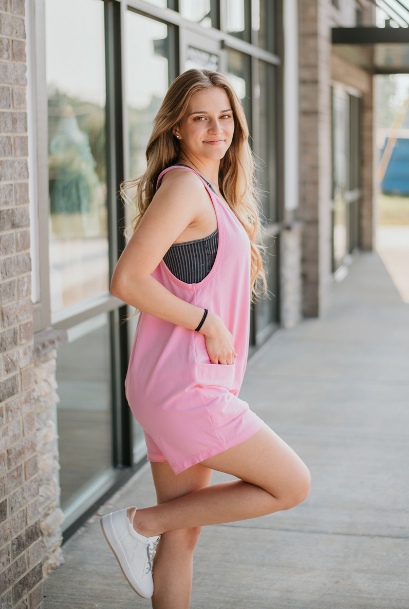 Oversize Tank V-neck Solid Jersey Romper - Effortless and oversized silhouette - Racerback - Oversized patch pockets - Dropped armholes - Soft and comfy onesie features a slouchy