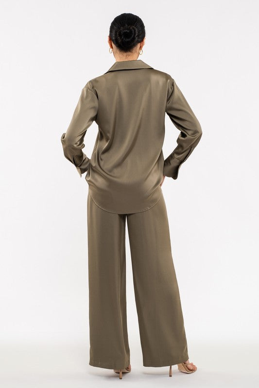 COLLARED - BUTTON UP - LONG SLEEVE - BUTTON CUFF - U HEM - 100%POLYESTER