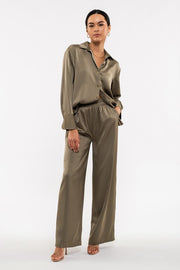ELASTIC WAIST BAND - HIGH WAIST - WIDE LEG - PANTS - SOLID - 97%POLYESTER, 3%SPANDEX