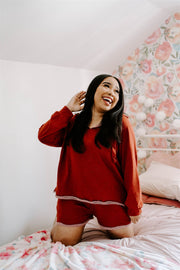 COTTON WASHED FRENCH TERRY HOODIE AND SHORTS SET. (SOLD AS A SET) HOODIE FEATURES CUFFED SLEEVE ENDS, RAW EDGE HEM AND DRAWSTRINGS. BOTTOMS FEATURE SIDE POCKETS AND ELASTIC WAISTBAND WITH DRAWSTRINGS. CONTENTS: 100% COTTON