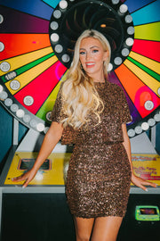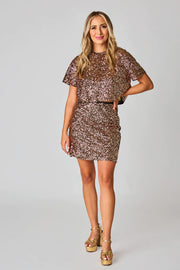 Shine the night away in our NEW Spicy set! The Spicy Set features a short sleeve sequin cropped top with button closure and sequin mini skirt with a zipper closure. Pair the top and skirt together with some bright colored heels and dainty jewelry, wear the top with some high-waisted Moonshine Jeans and booties, or style the skirt by itself with a white bodysuit and a headband!