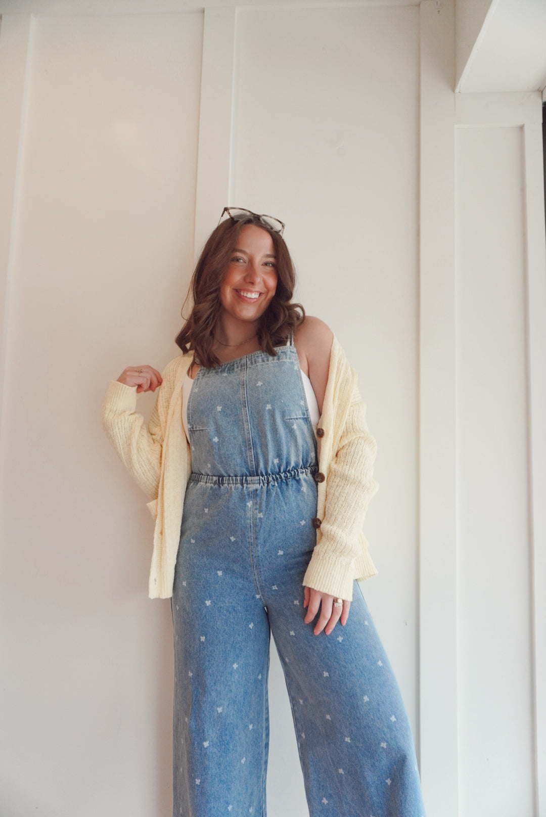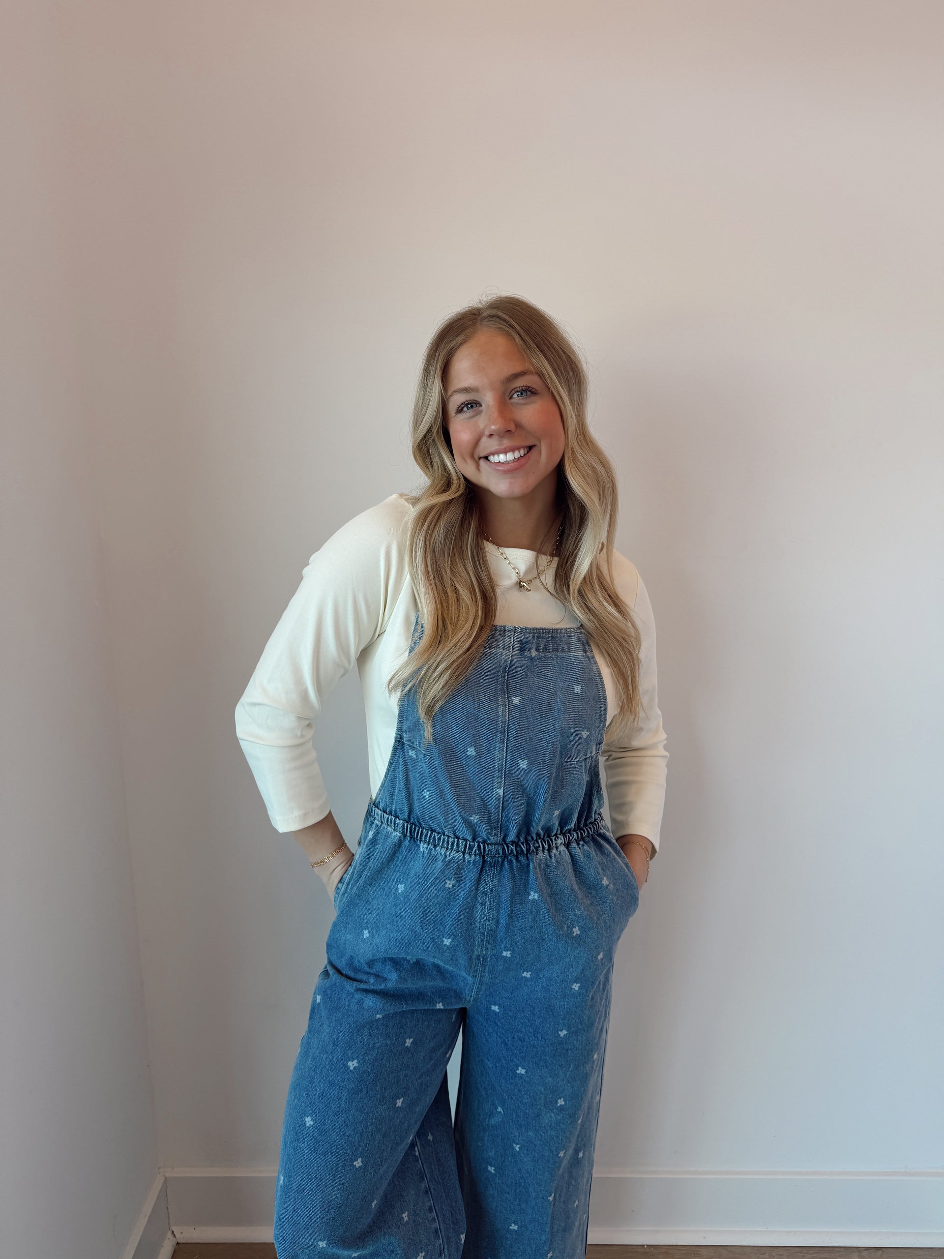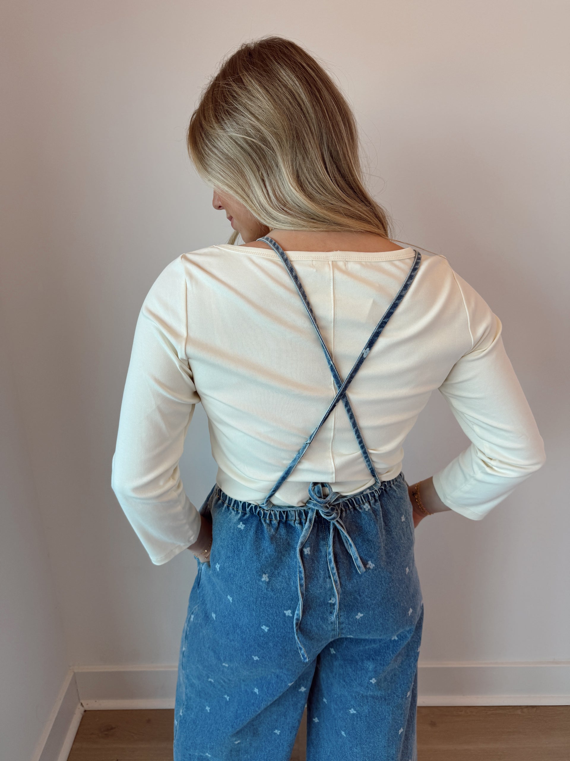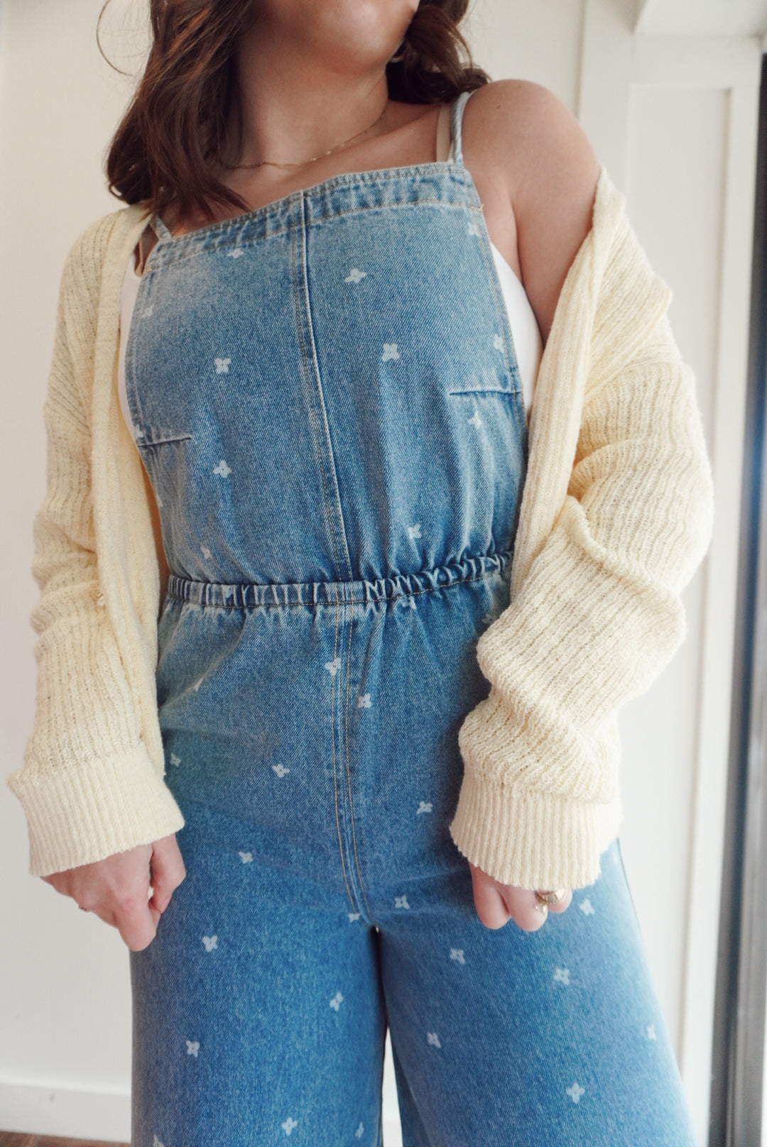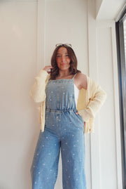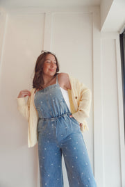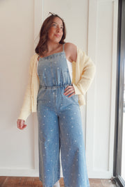 Denim flower print jumpsuit