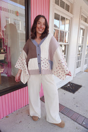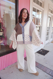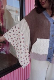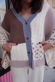 V neck gauze mixes floral chenille sweater cardigan