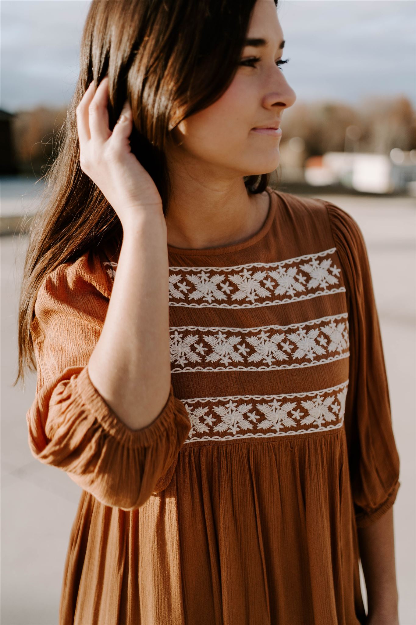 EMBROIDERED BABYDOLL DRESS FEATURING ELBOW LENGTH SLEEVES WITH ELASTIC SLEEVE ENDS, INVISIBLE SIDE ZIPPER, FULL LINING, BACK KEYHOLE ACCENT WITH SELF TIE AND FLORAL EMBROIDERED ACCENTS. PAIR WITH KNEE HIGH BOOTS TO COMPLETE THE LOOK! CONTENTS: 100% RAYON | LINING: 100% POLYESTER