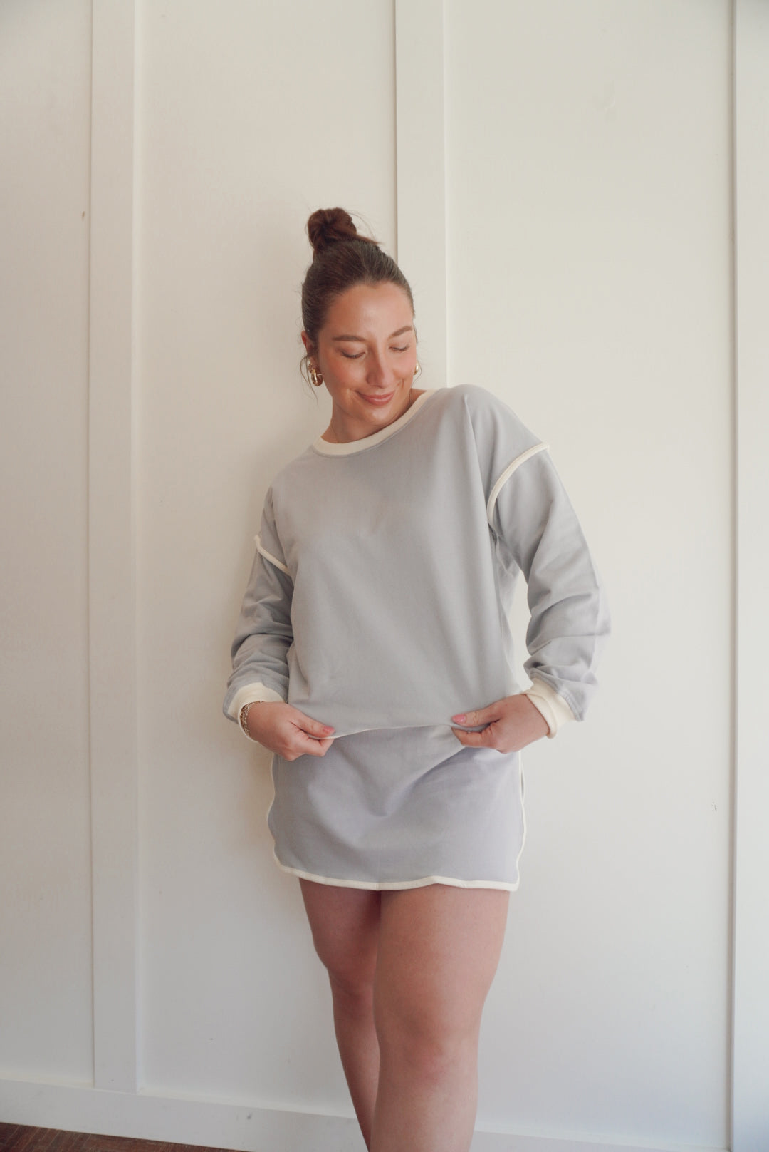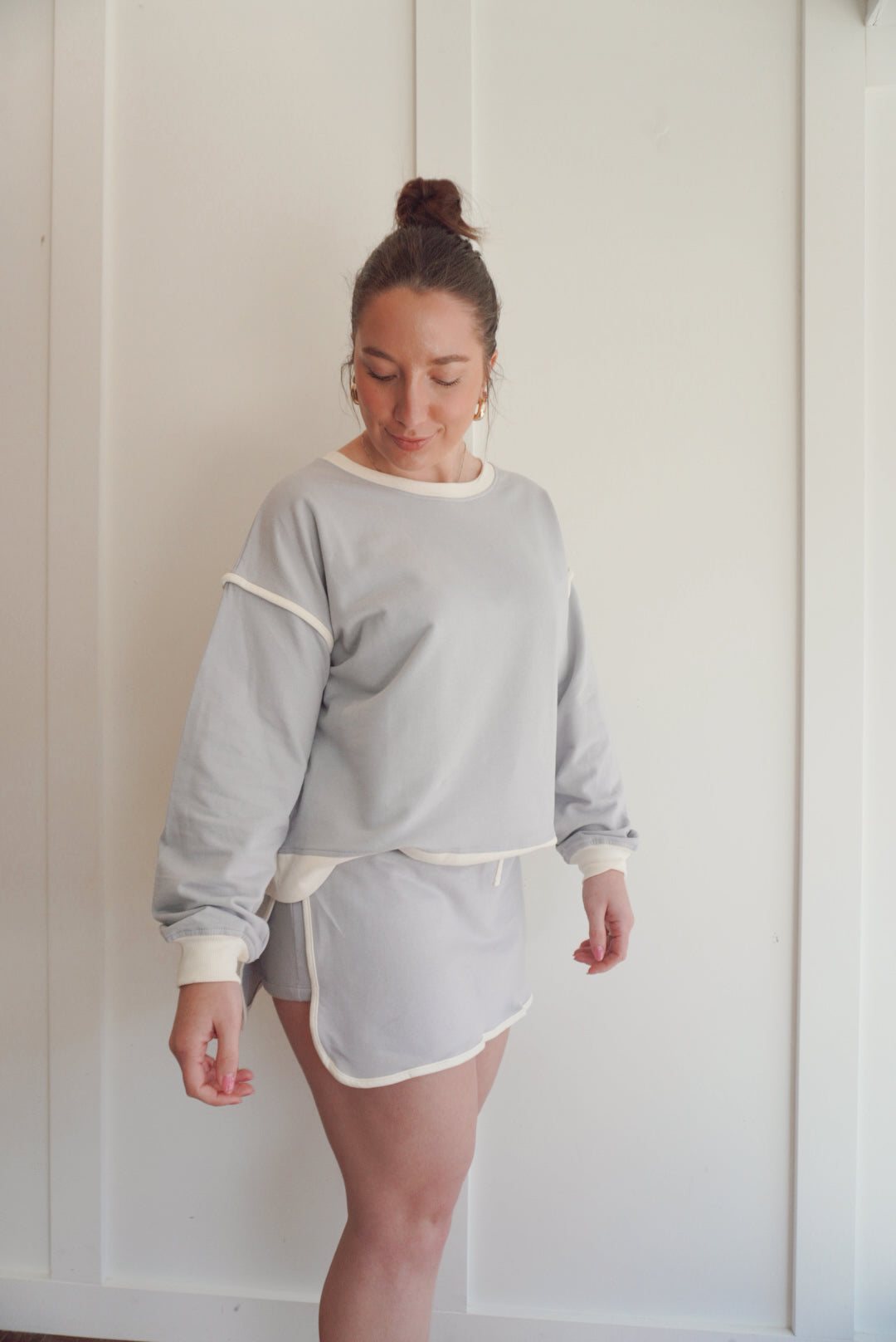 French terry drop shoulder pullover and skort set