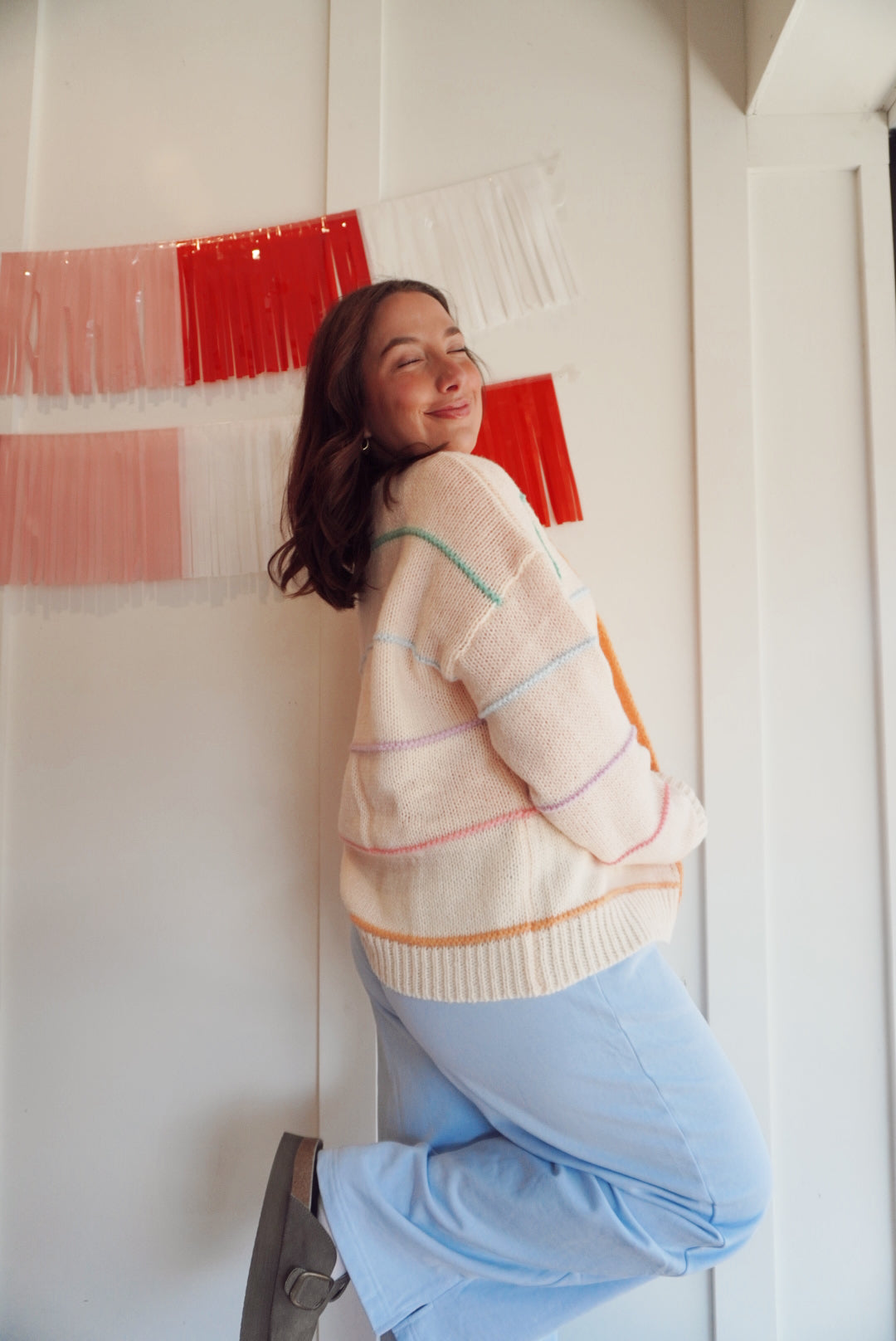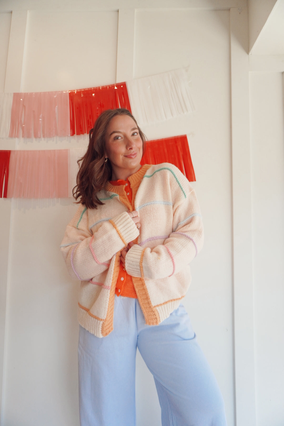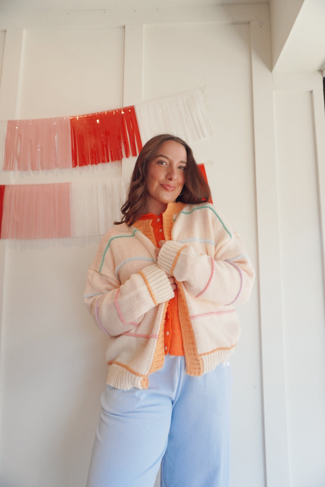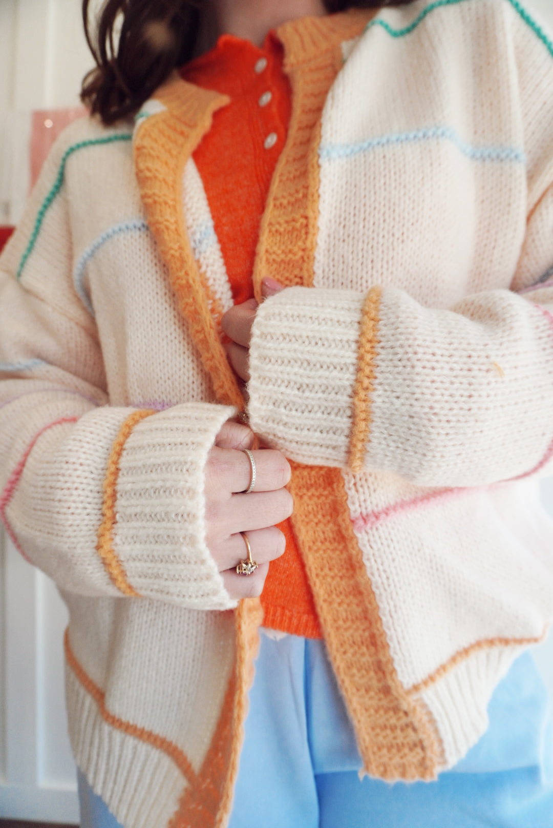 Multicolor striped sweater cardigan.