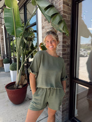 WOVEN AIRFLOW TOP & SHORTS SET -RELAX FIT * TOP TOTAL BODY LENGTH: 24", BUST: 46" approx. * SHORTS TOTAL WAIST: 26", INSEAM: 2.75" approx. - MEASURED FROM SMALL * COLOR MAY VARY SLIGHTLY DUE TO MONITOR RESOLUTION