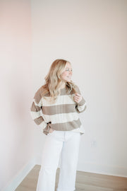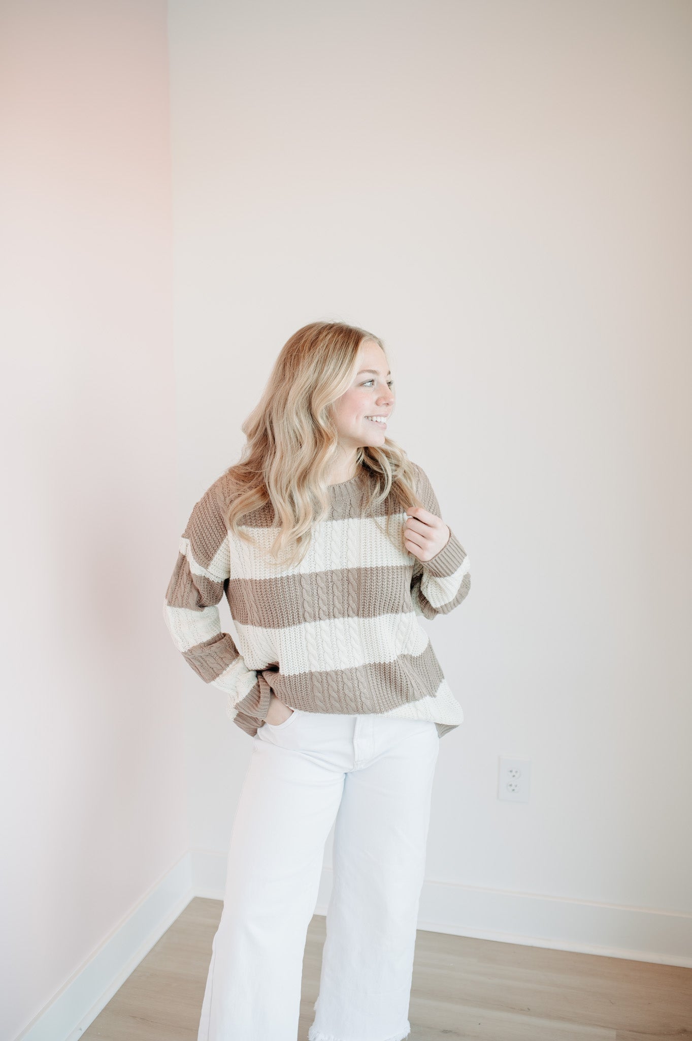 Increase quantity for Striped Cable Knit Crew Neck Sweater