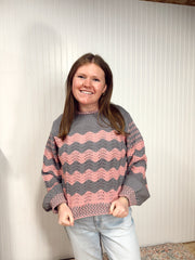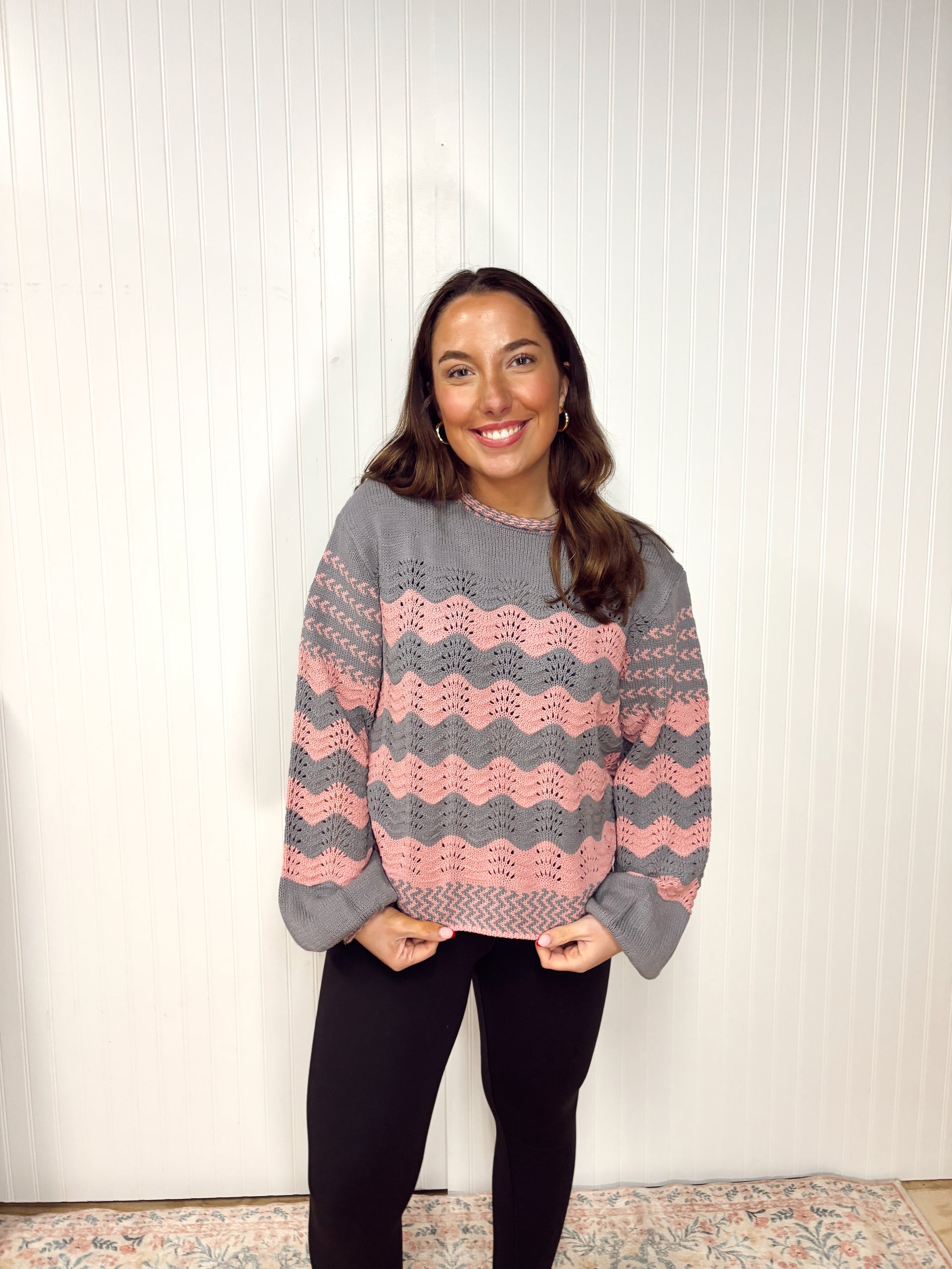 WAVY STRIPE PUFF SLEEVE SWEATER