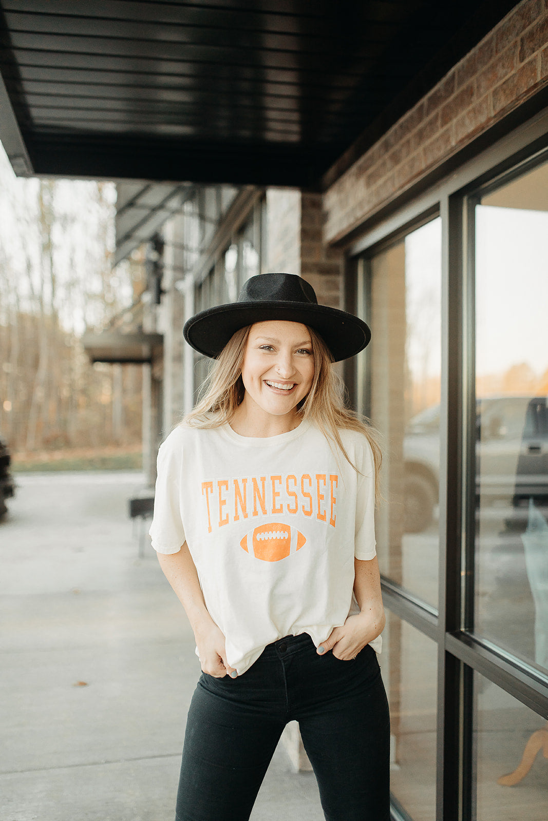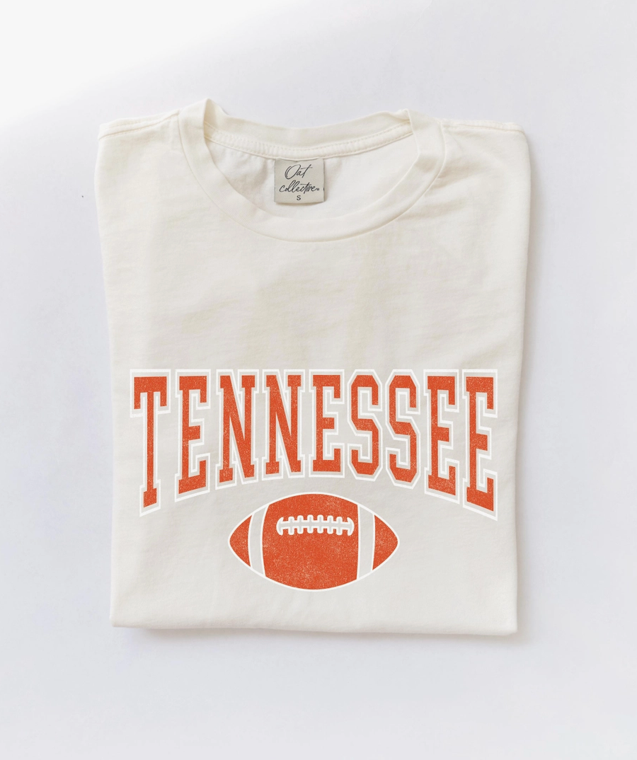 TENNESSEE FOOTBALL Mineral Washed Graphic Top -100% Premium Cotton Jersey. -Relaxed unisex fit. -Screen Printed with water based ink. -All items are slightly different because of the dying process of the garment.