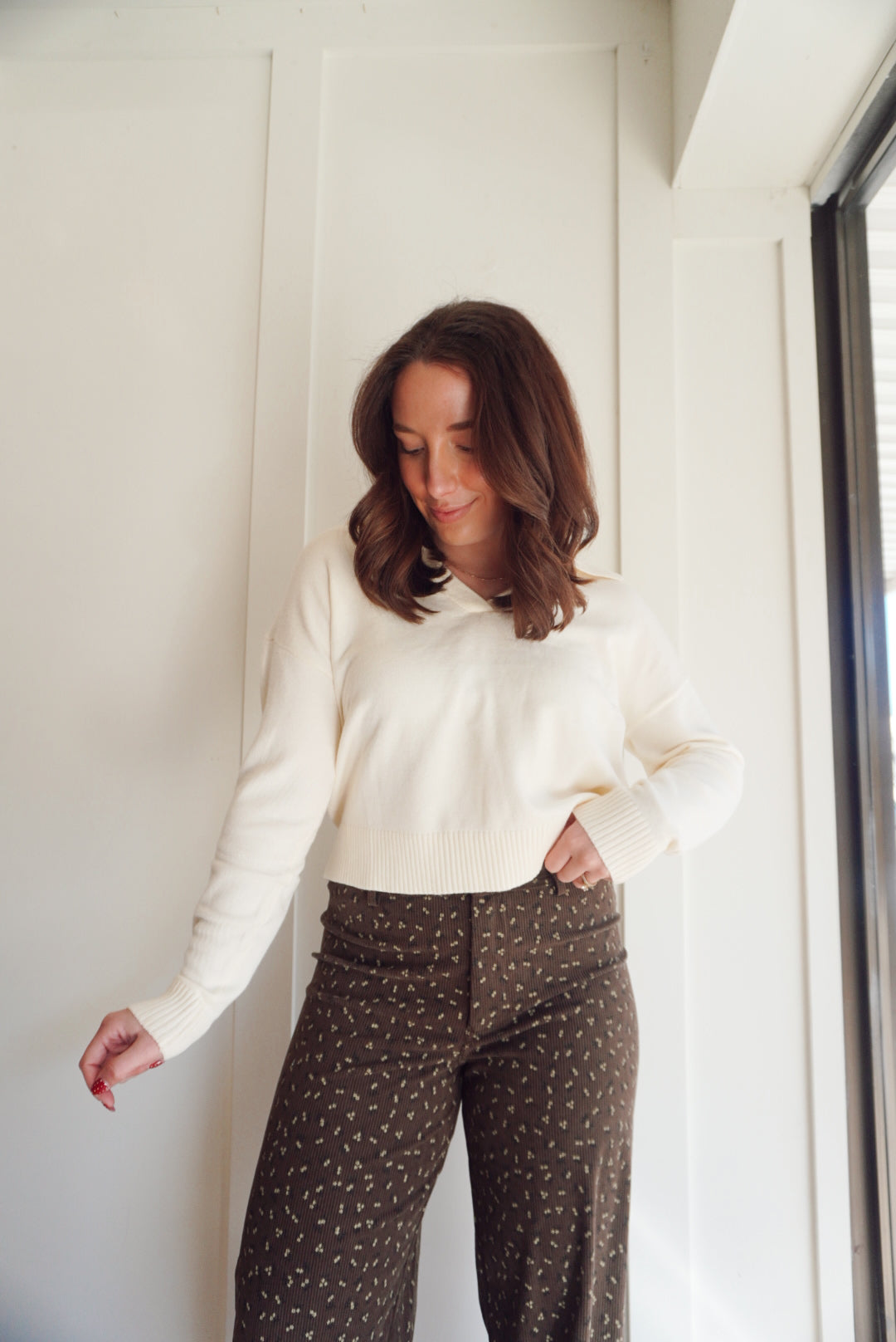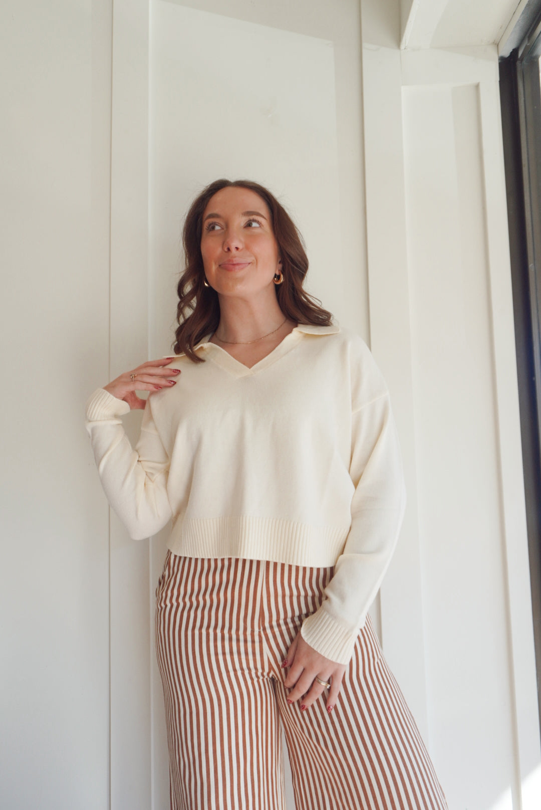 Soft sweater knitted top with collar