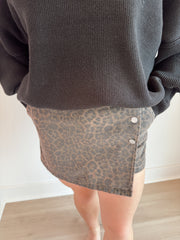 Mid rise denim wrap skort