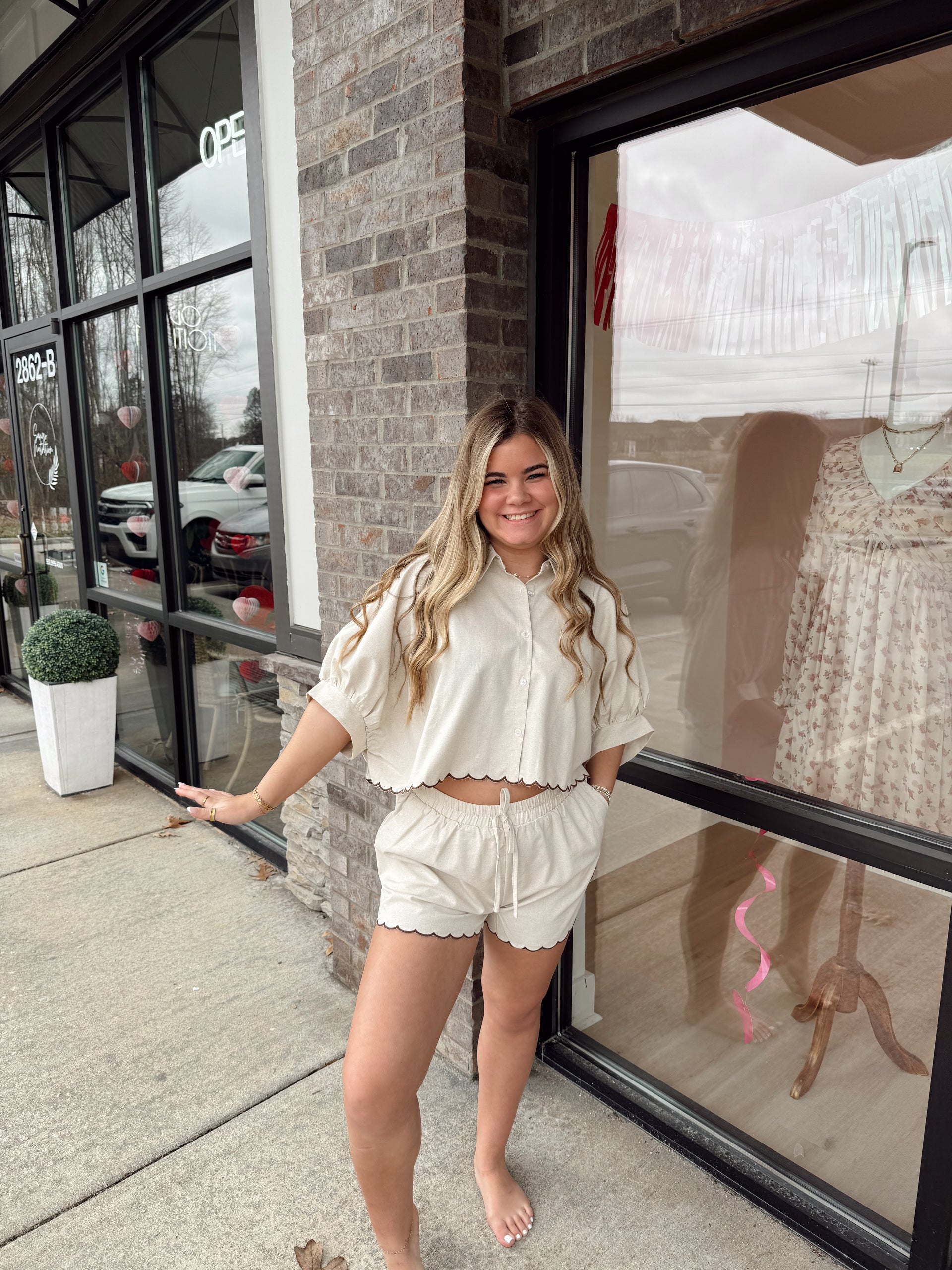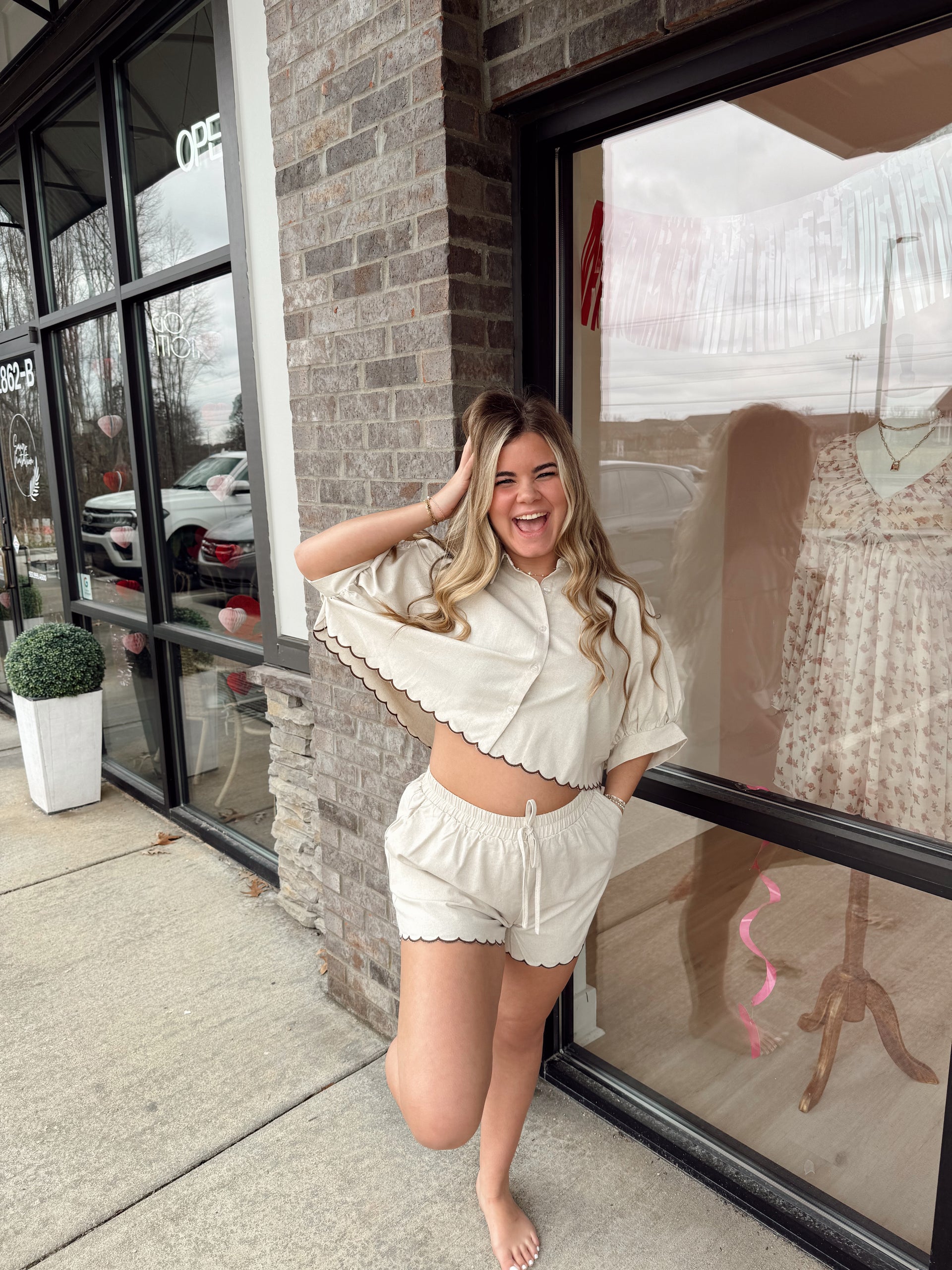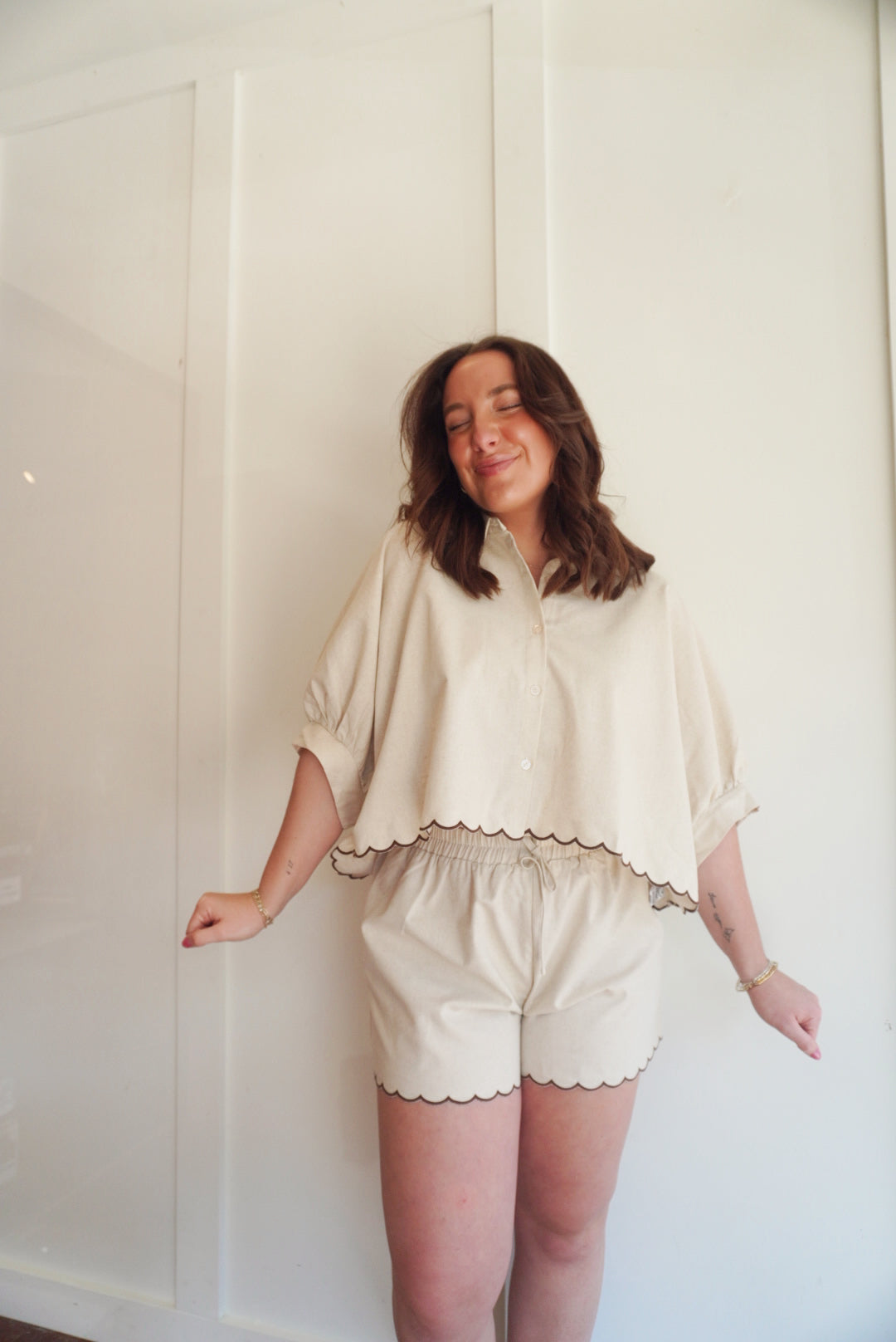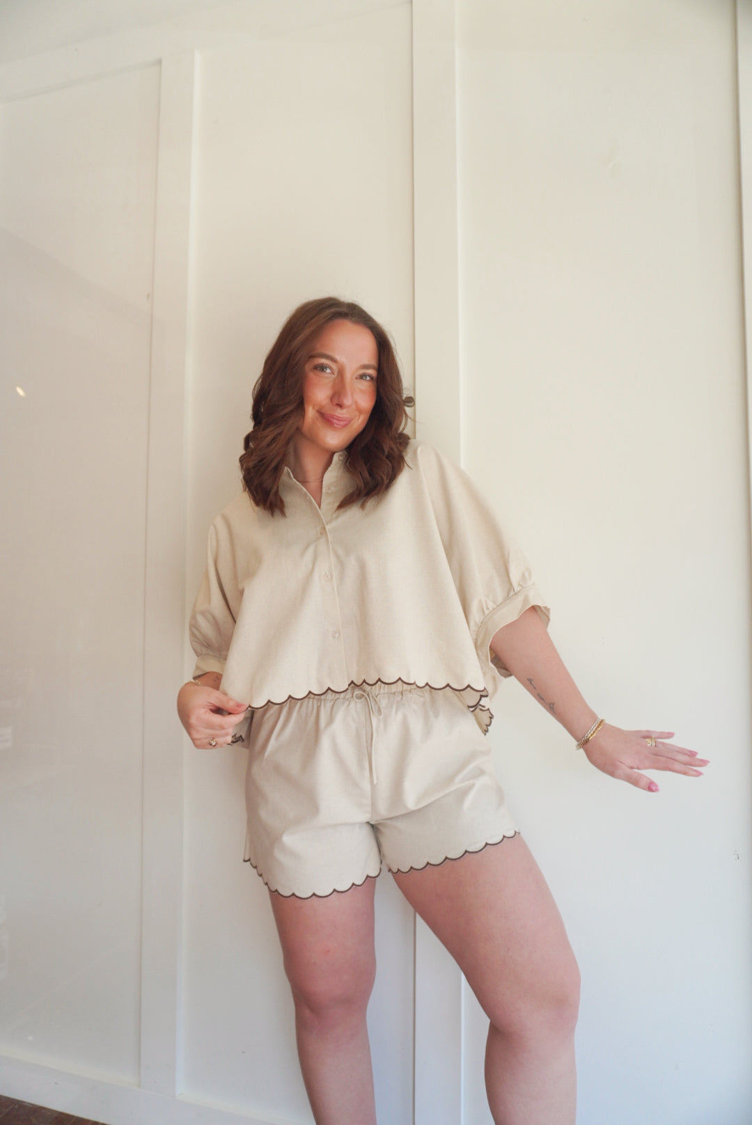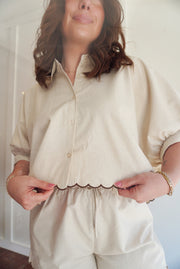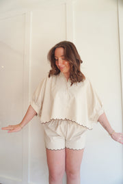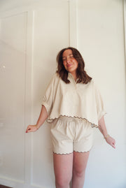 Contrast scallop hem top and shorts matching set