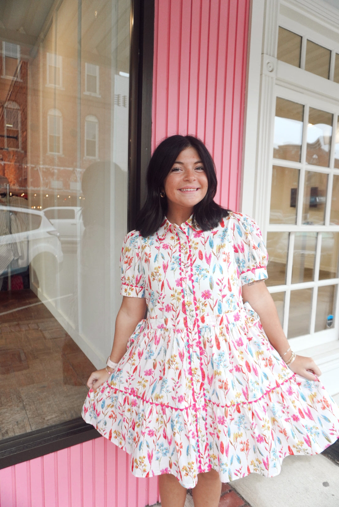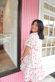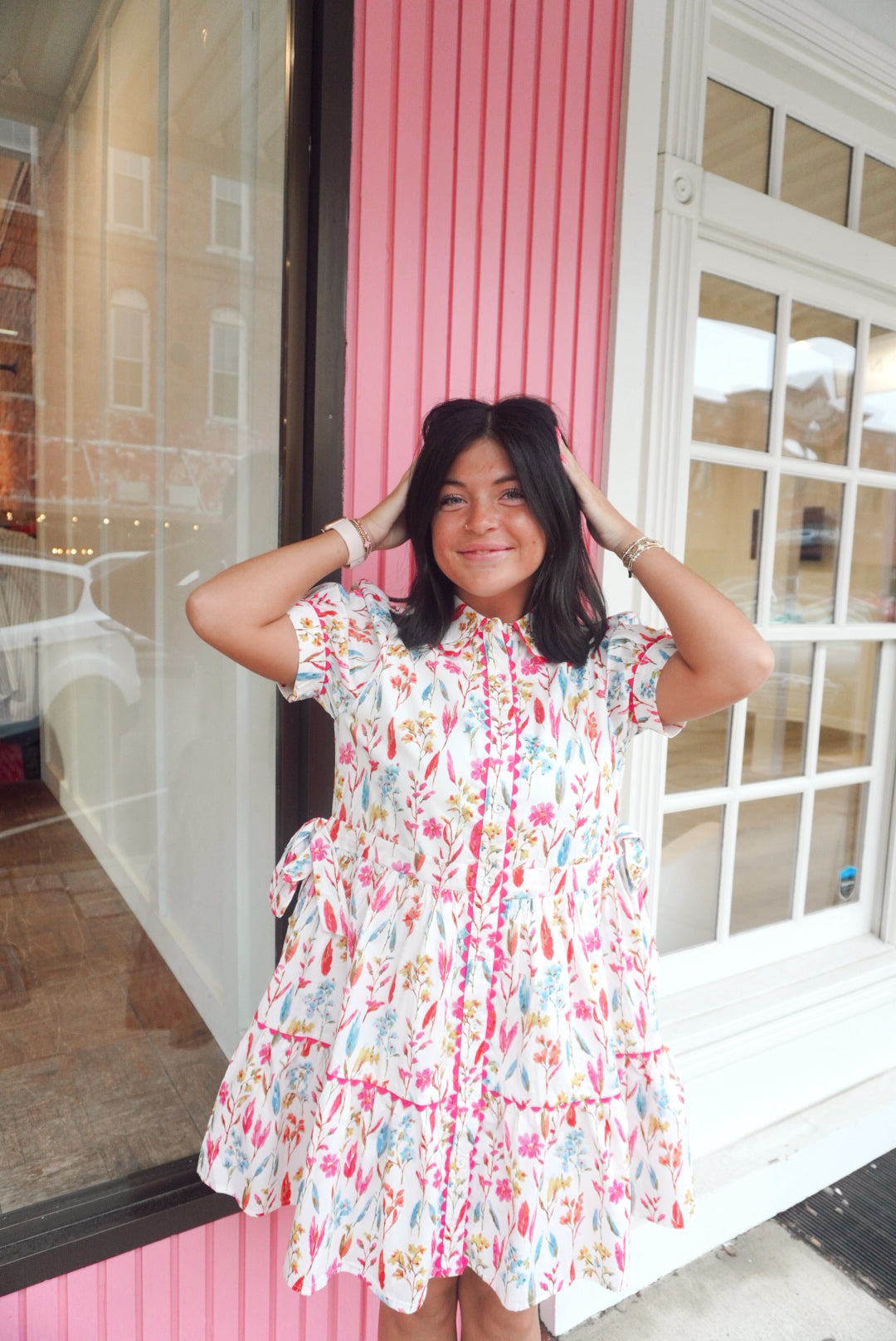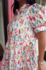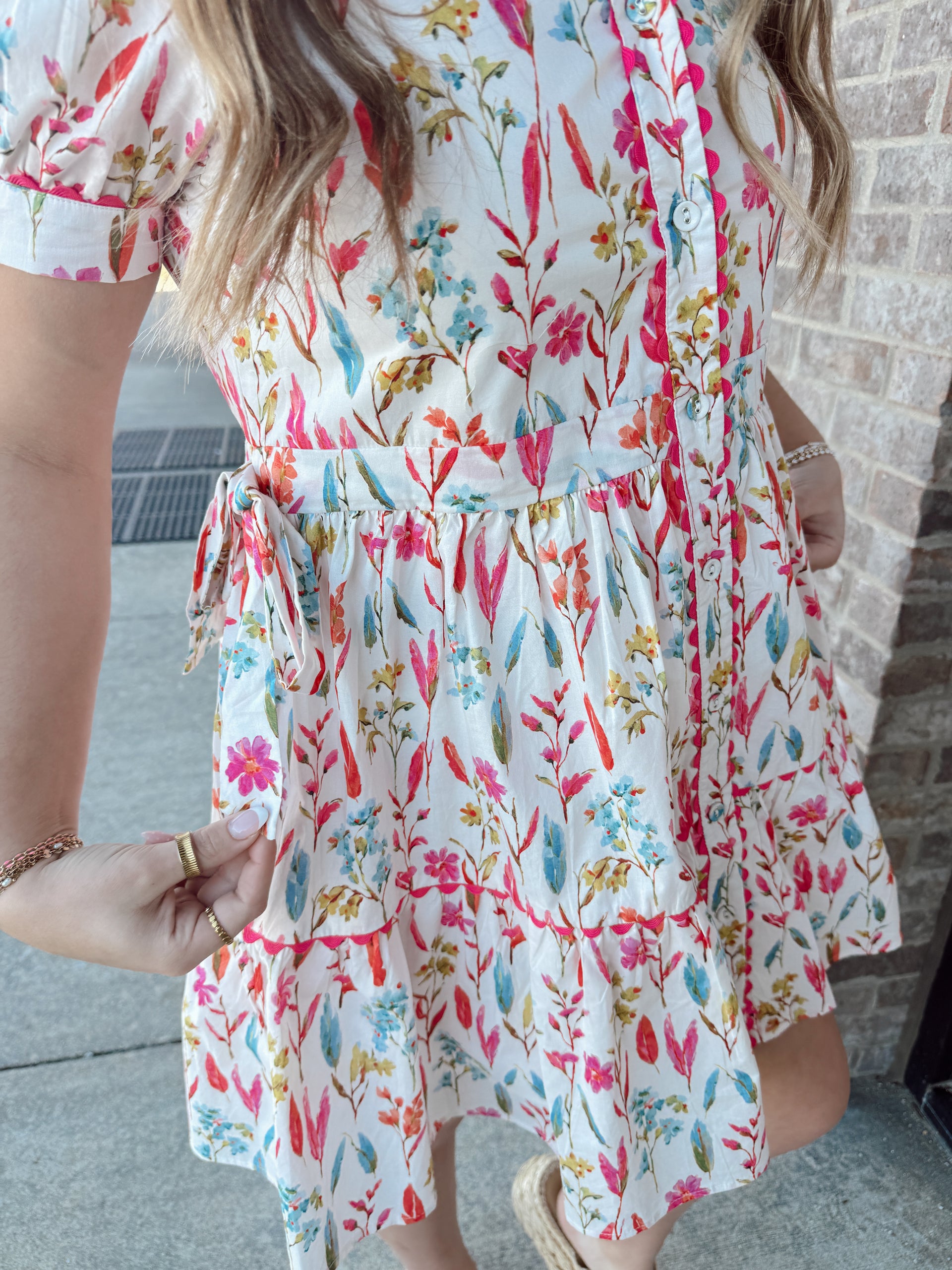 Side tie drawstring waist mini floral dress