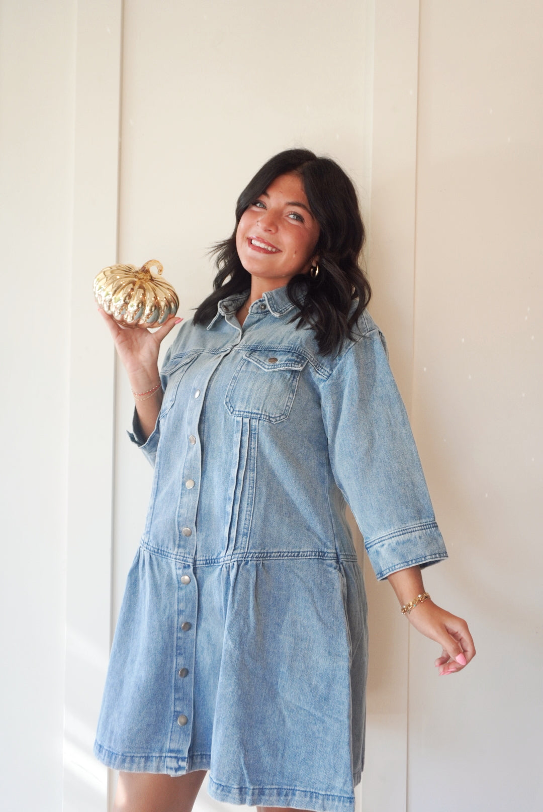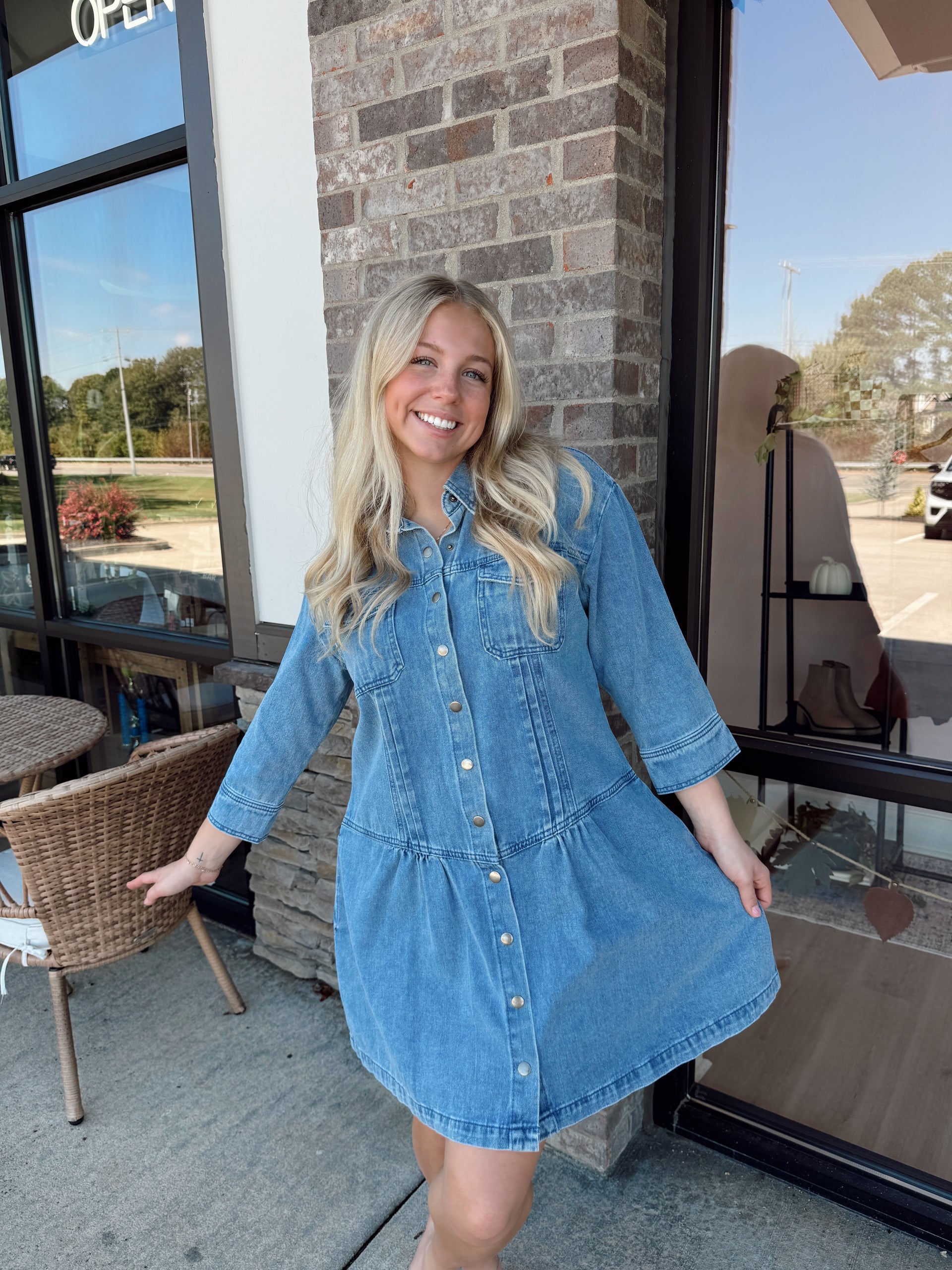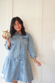 Denim button up mini dress