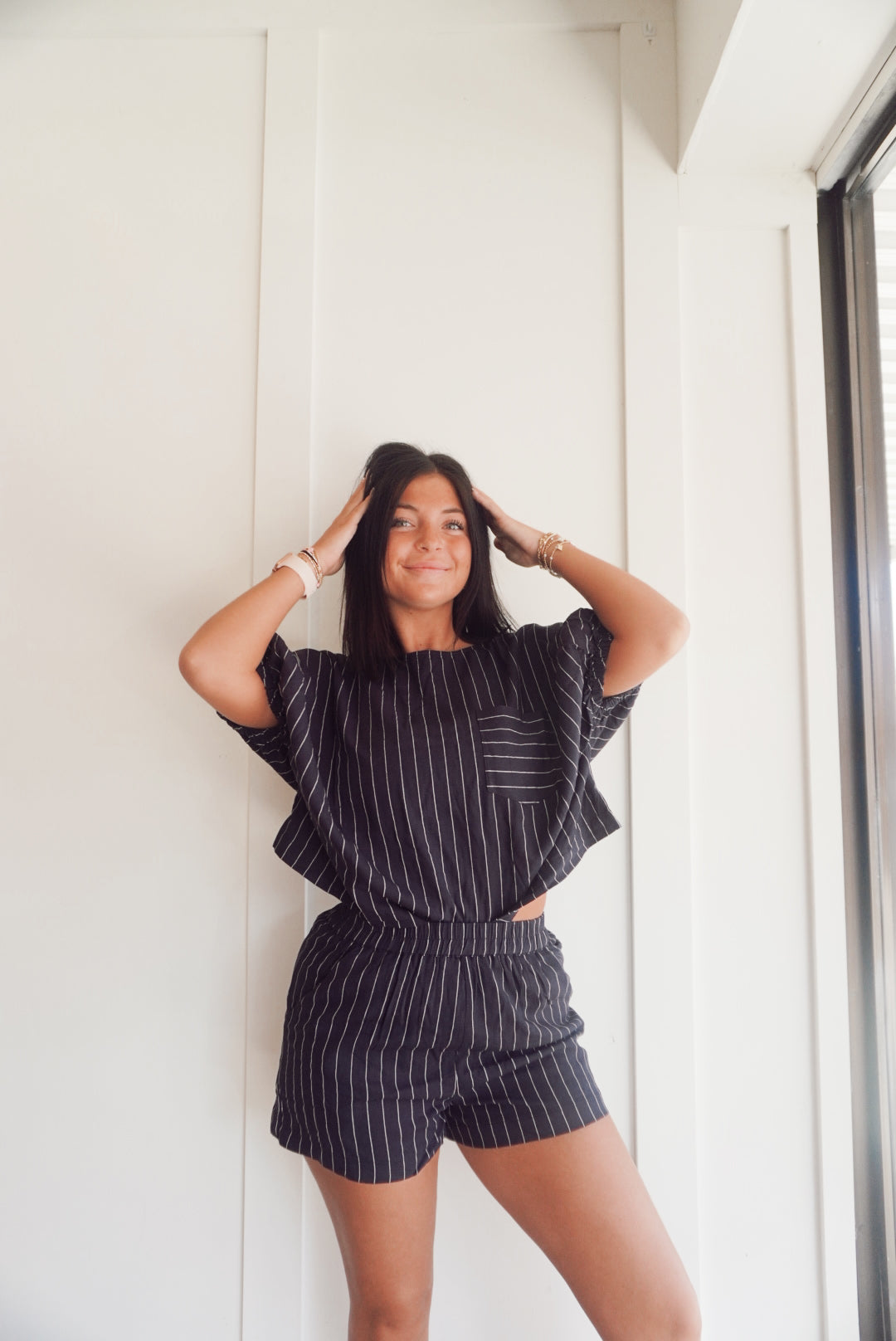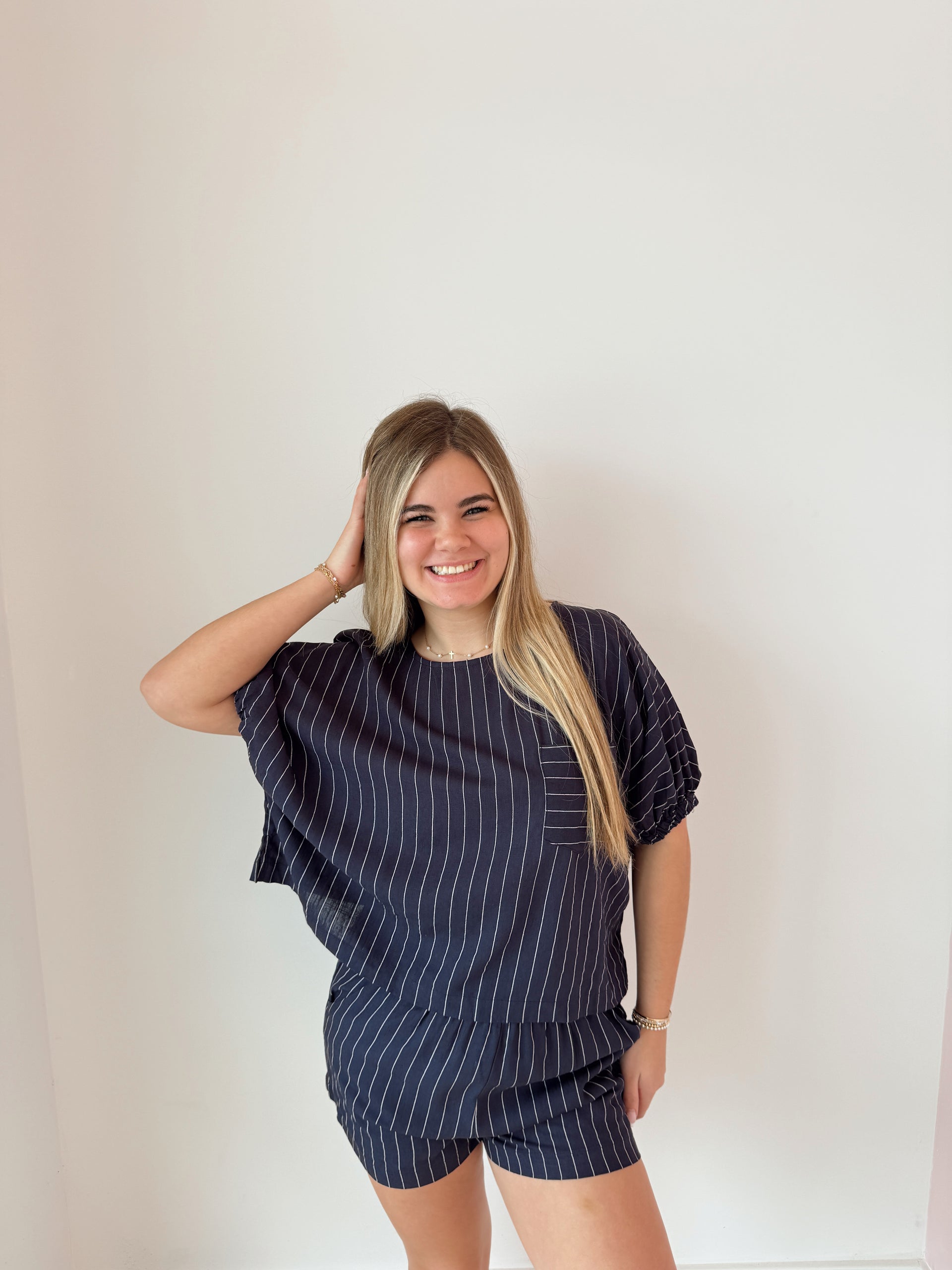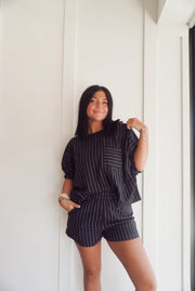 Oversized boxy striped top with matching shorts