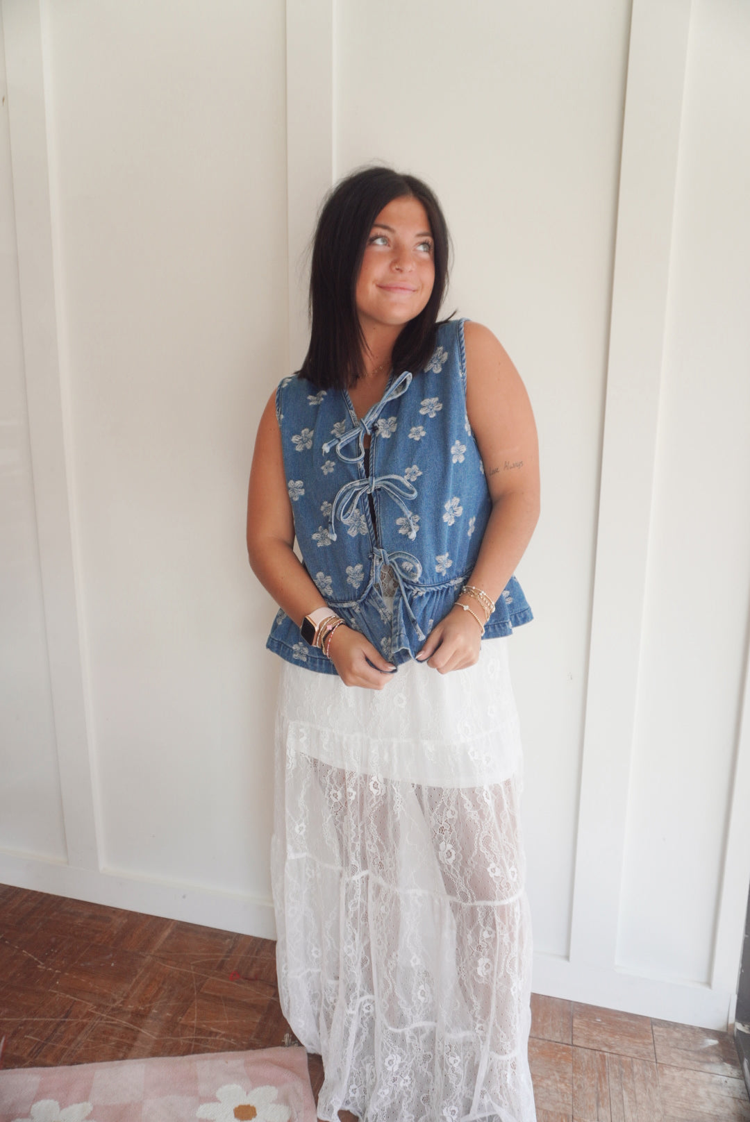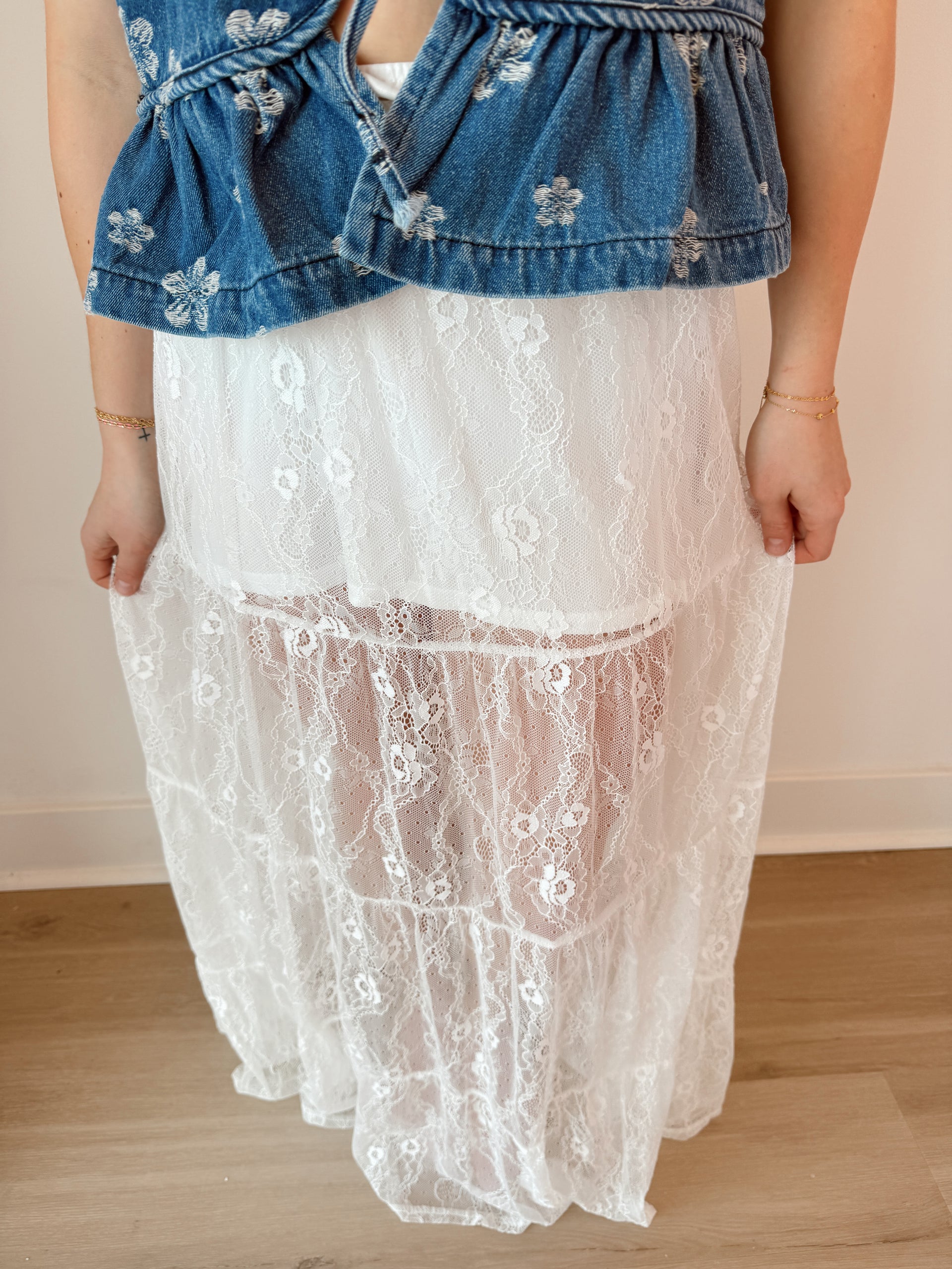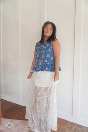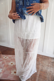 Tiered floral lace maxi skirt with lining