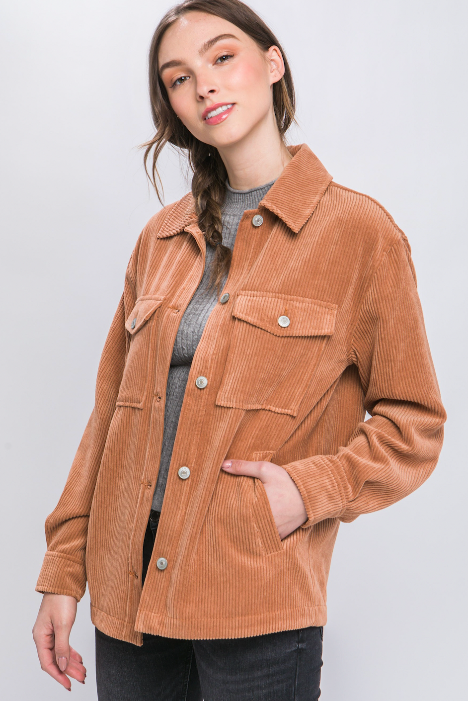 44 Corduroy Button Down Jacket With Pockets CAMEL