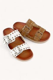 EYELET EMBELLISHED DOUBLE STRAP SANDALS VINTAGE TEXTURED MOLDED FOOTBED ADJUSTABLE BUCKLE STRAP RUBBER OUTSOLE