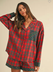 Plaid woven pajama shirt and shirts set!
