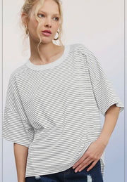 Decrease quantity for Basic striped drop shoulder short sleeve