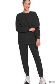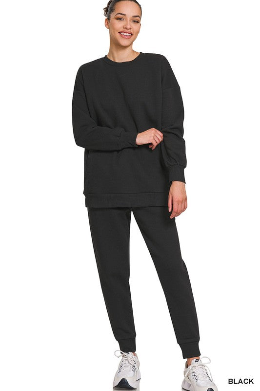ROUND NECK PULLOVER SWEATSHIRT & SWEATPANTS SET * Price may vary by the color due to recent shipping cost increase from overseas: price for newer shipment is higher than previous shipment. **SWEATSHIRT TOTAL BODY LENGTH: 28", BUST: 44" approx. - MEASURED FROM SMALL **SWEATPANTS TOTAL WAIST: 27", INSEAM: 28.25" approx. - MEASURED FROM SMALL ** COLOR MAY VARY SLIGHTLY DUE TO MONITOR RESOLUTION