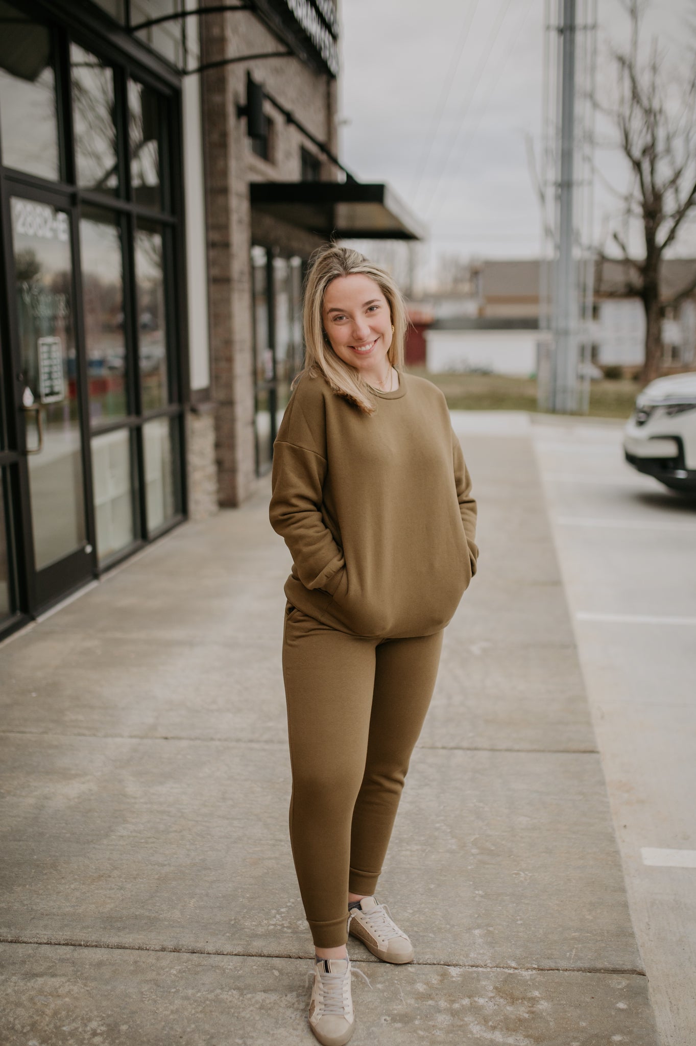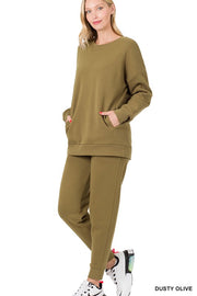 ROUND NECK PULLOVER SWEATSHIRT & SWEATPANTS SET * Price may vary by the color due to recent shipping cost increase from overseas: price for newer shipment is higher than previous shipment. **SWEATSHIRT TOTAL BODY LENGTH: 28", BUST: 44" approx. - MEASURED FROM SMALL **SWEATPANTS TOTAL WAIST: 27", INSEAM: 28.25" approx. - MEASURED FROM SMALL ** COLOR MAY VARY SLIGHTLY DUE TO MONITOR RESOLUTION