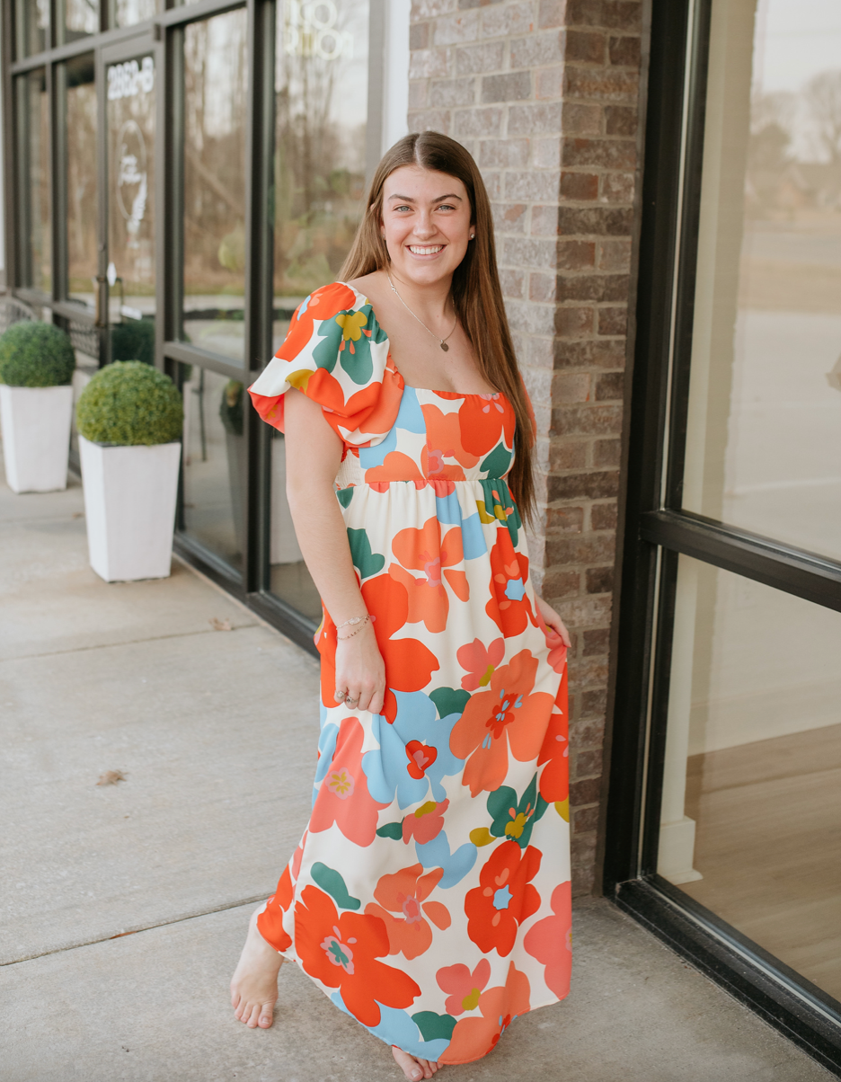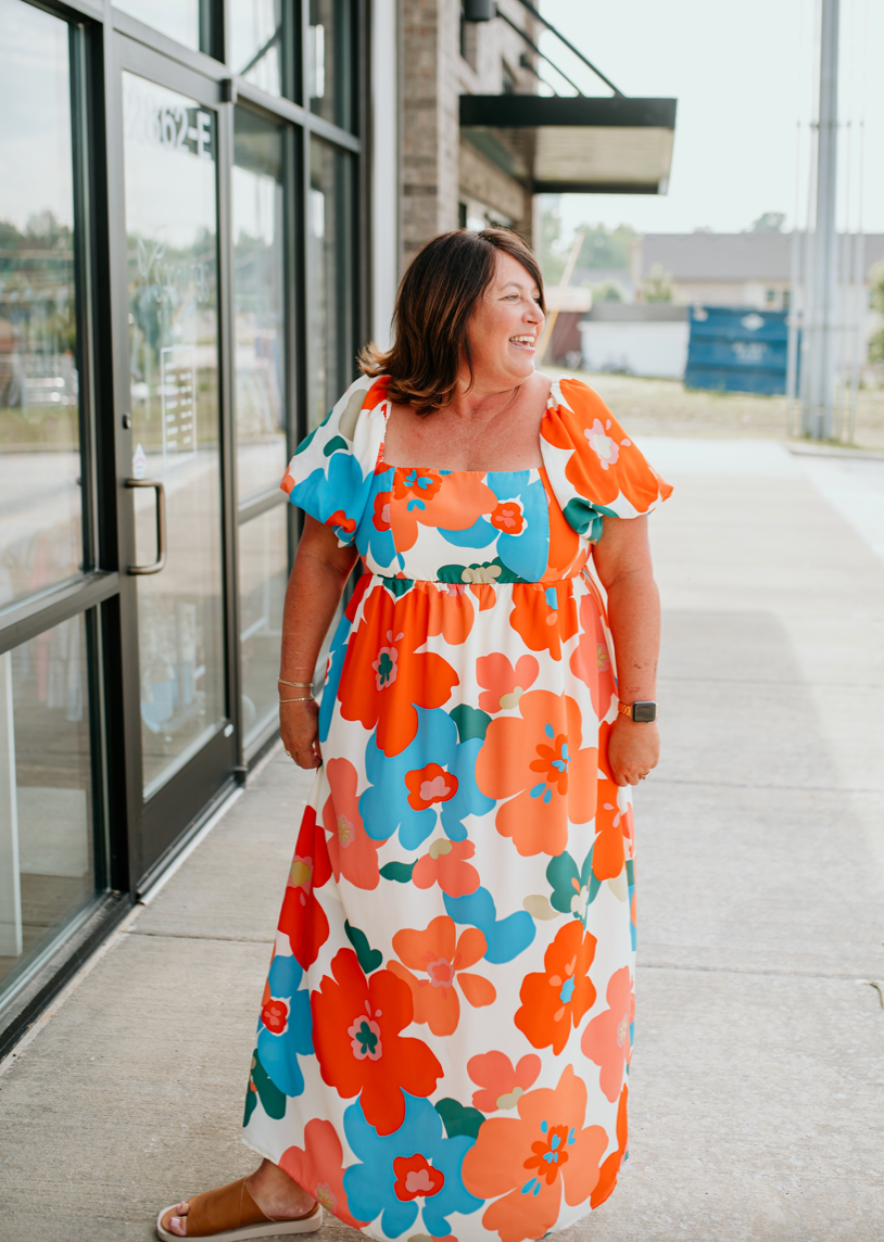 floral maxi dress with open back, smocking, and square neckline. - Very comfy to wear daily. - Best women dress - Very Cute women dress PLUS SIZE, FLORAL, MAXI, DRESS, PUFF SLEEVES, SQUARE NECKLINE, SMOCKED, OPEN BACK, MULTICOLOR,